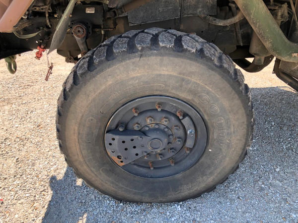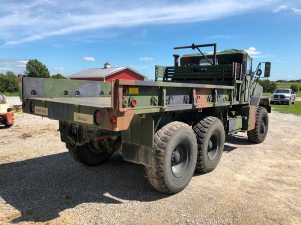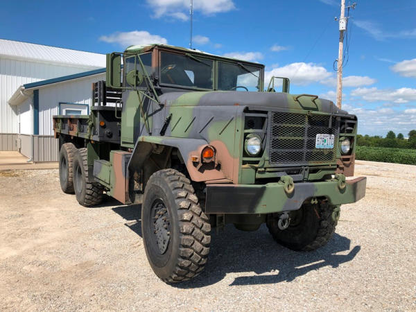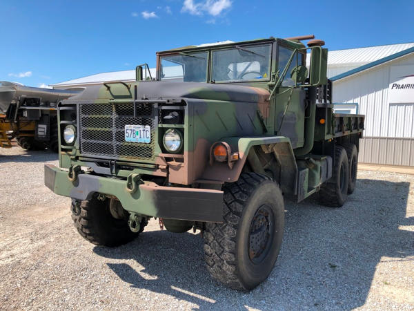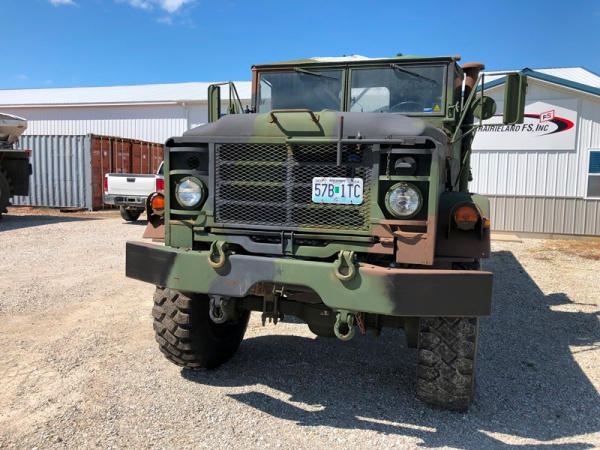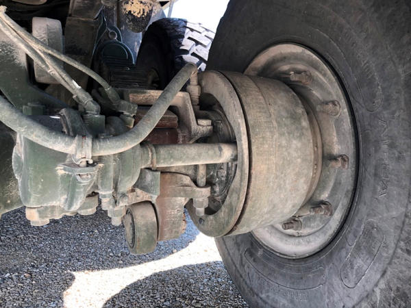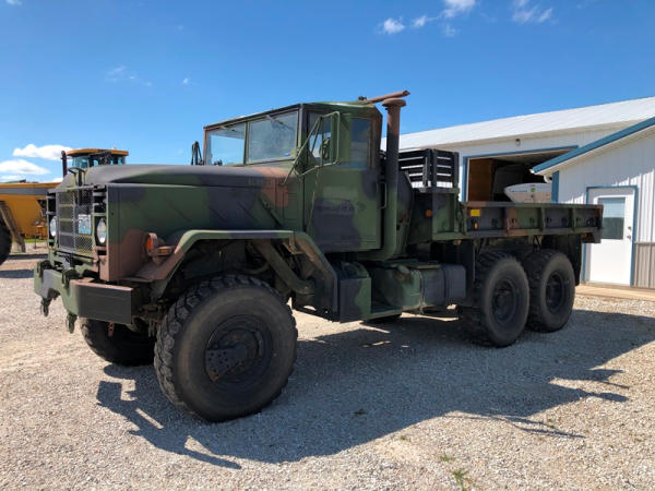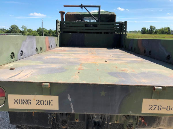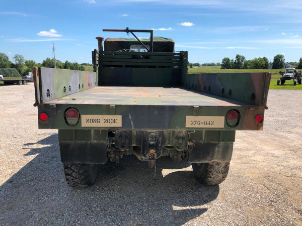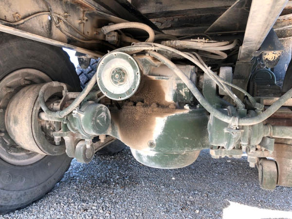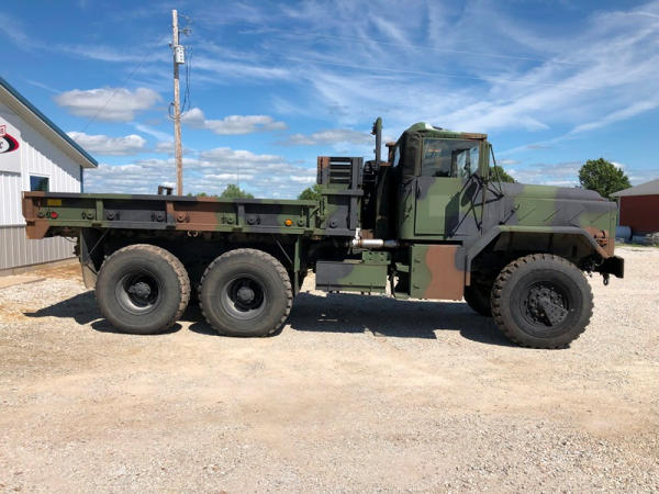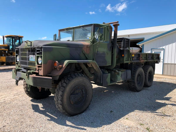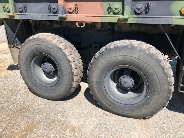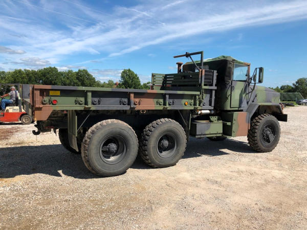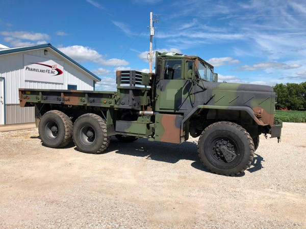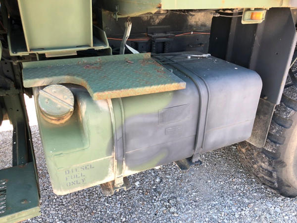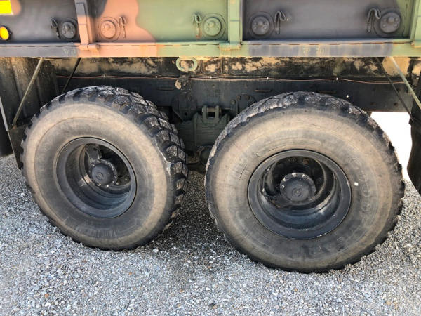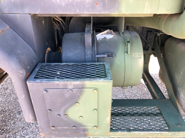 1991 Army Truck (NP8844, Unit 250), Cummins 8.3L diesel engine, automatic transmission, tandem axle, spring suspension, approx. 14' flatbed, rear pintle hitch, 14.00R20 tires, shows 10,054 miles.