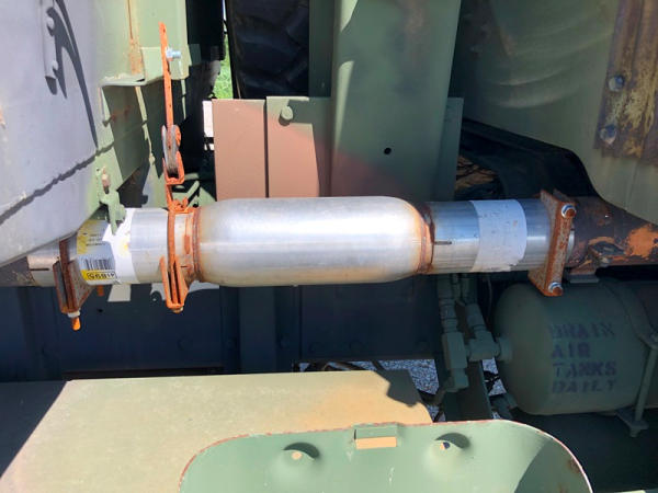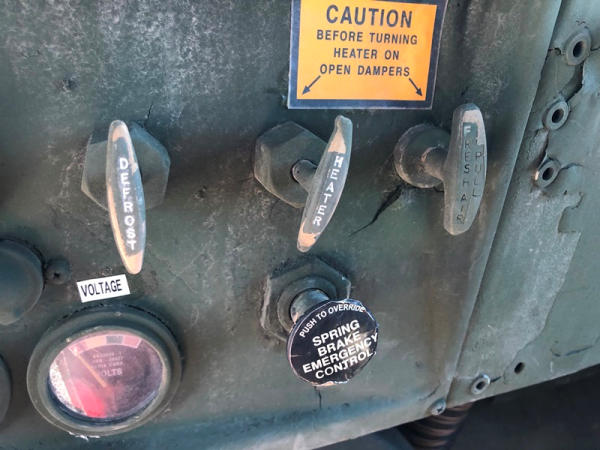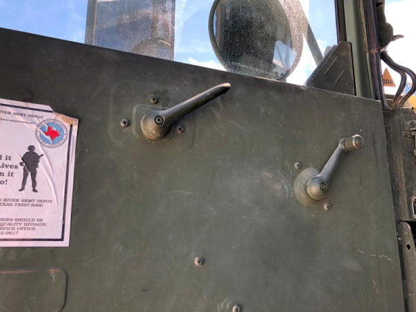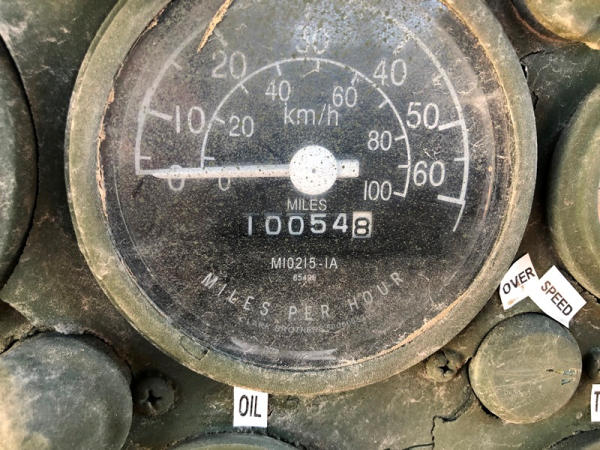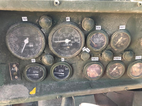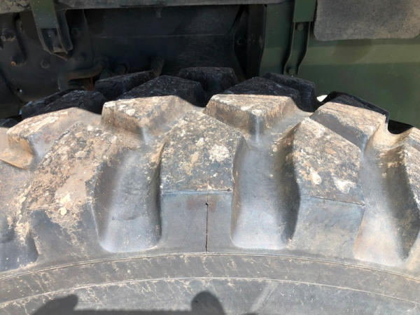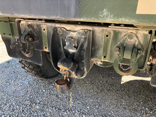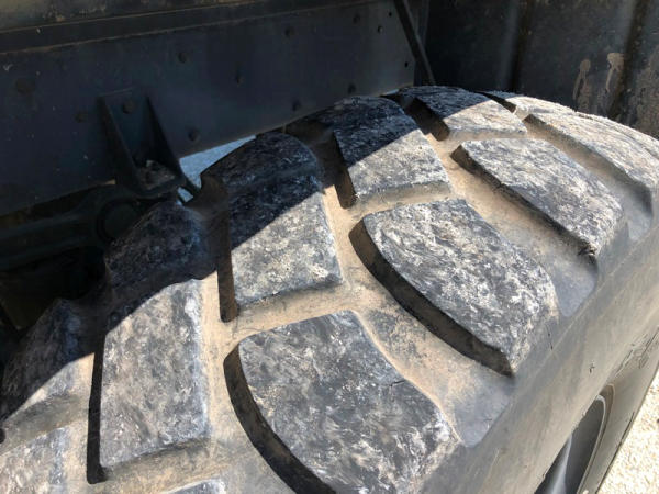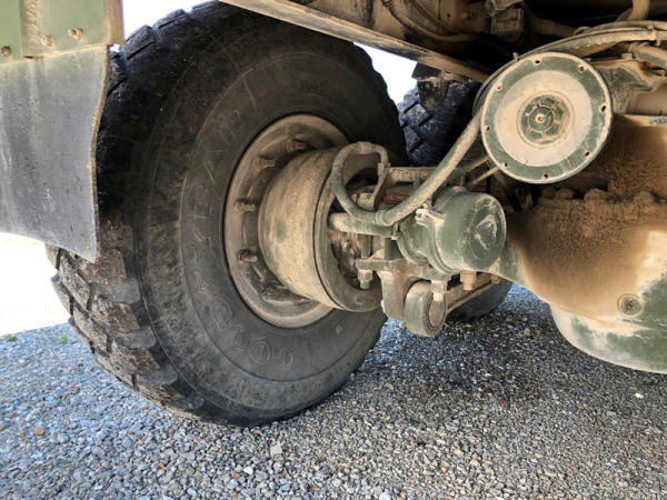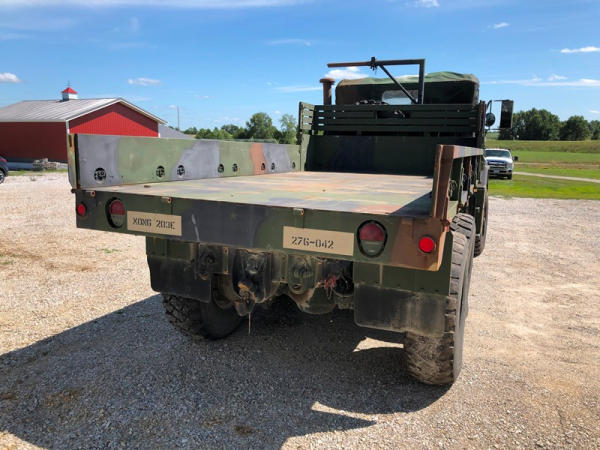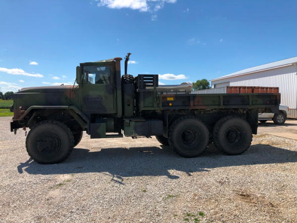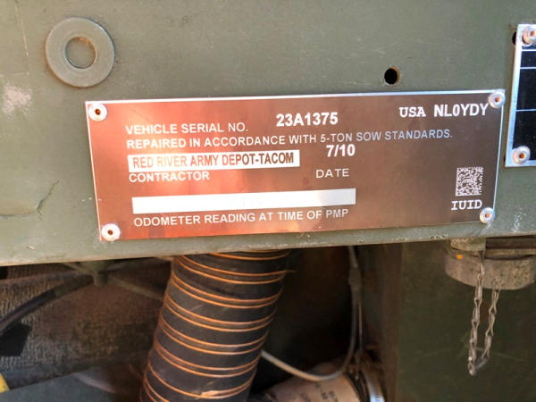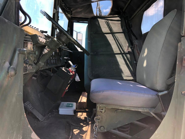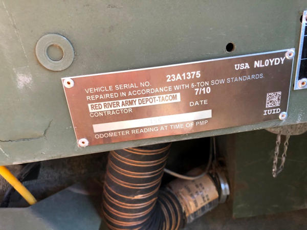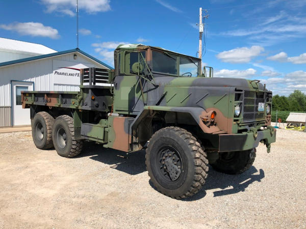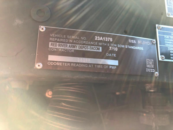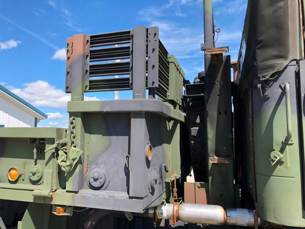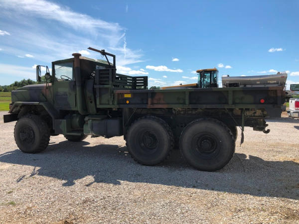 1991 Army Truck (NP8844, Unit 250), Cummins 8.3L diesel engine, automatic transmission, tandem axle, spring suspension, approx. 14' flatbed, rear pintle hitch, 14.00R20 tires, shows 10,054 miles.