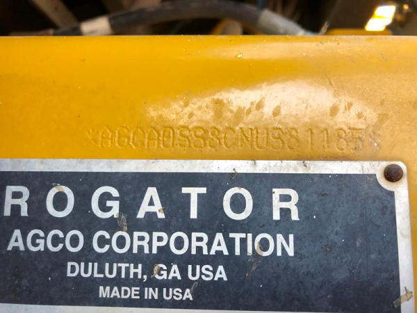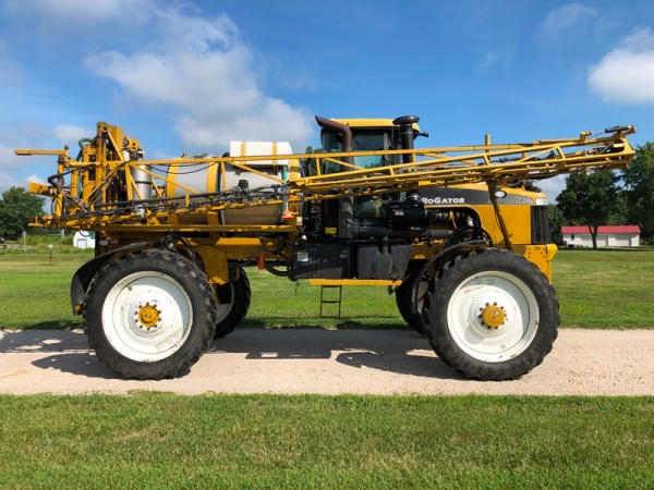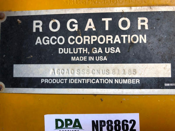 2009 RoGator SS884 Sprayer (NP8862, Unit 213), Cat diesel engine, hydrostatic transmission, heat, air conditioning, Am/Fm CD radio, 800 gallon stainless steel liquid system (S/N LAGCA0SS8CNUS81185), 5-way nozzle bodies, foam marker, stainless steel foam marker tank, top poly rinse tank, 380/90R46 tires, Raven GPS, lightbar, Raven Viper Pro, shows 4,430 hours.