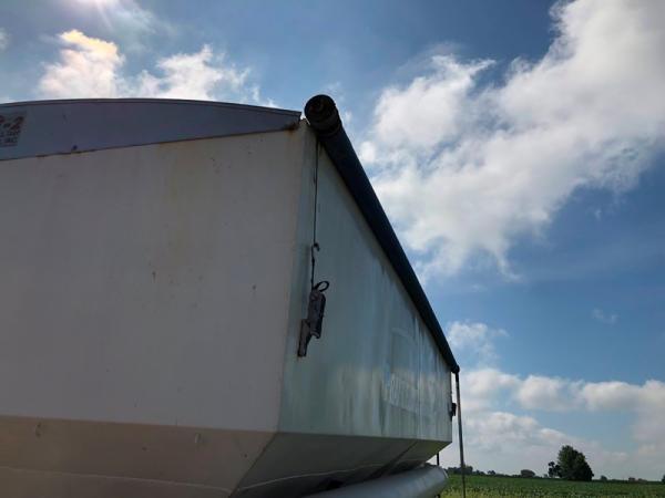 Dry Tender Box (NP8864), approx. 16 ton capacity, 2 compartment, side discharge auger, roll tarp.