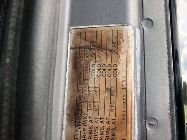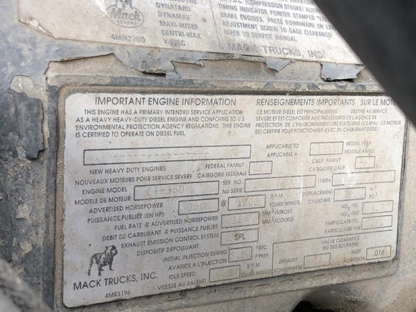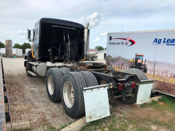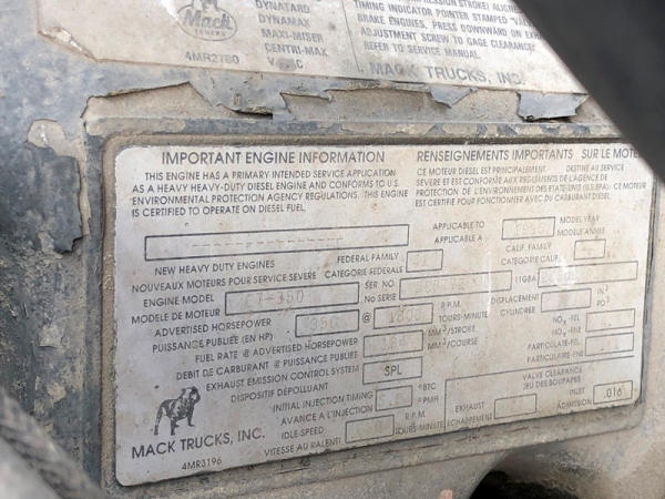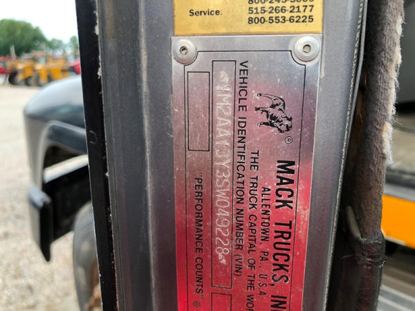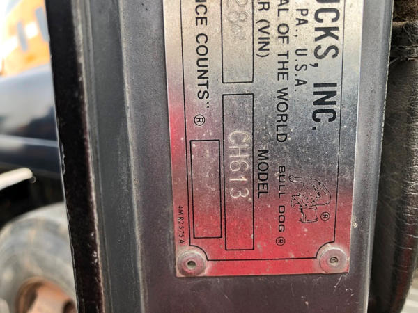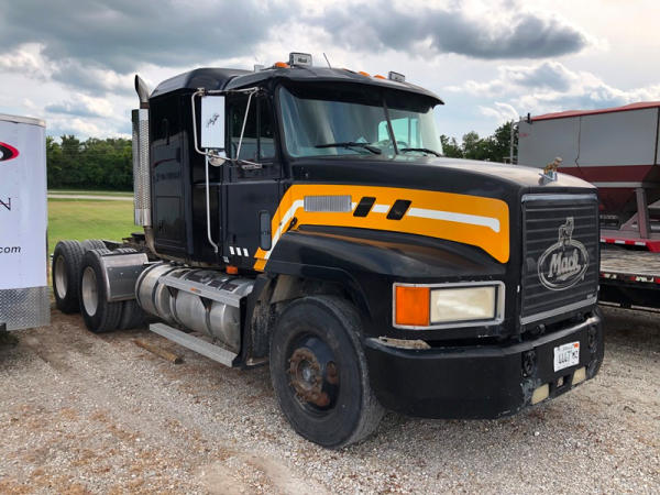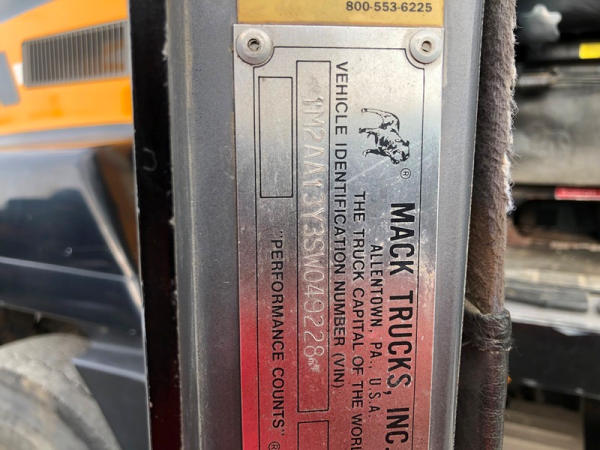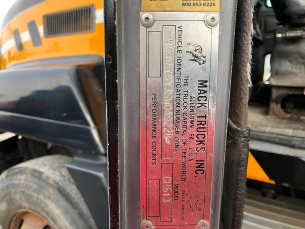 1995 Mack CH613 Truck (NP8878, Unit 358), Mack E7-350 diesel engine, Maxitorque T2090 9 speed transmission, heat, air conditioning, Am/Fm CD radio, cruise, air ride cab, tandem axle, air ride suspension, 5th wheel plate, wet kit, 11R22.5 front tires, 11R24.5 rear tires, rear aluminum wheels, shows 424,878 miles.