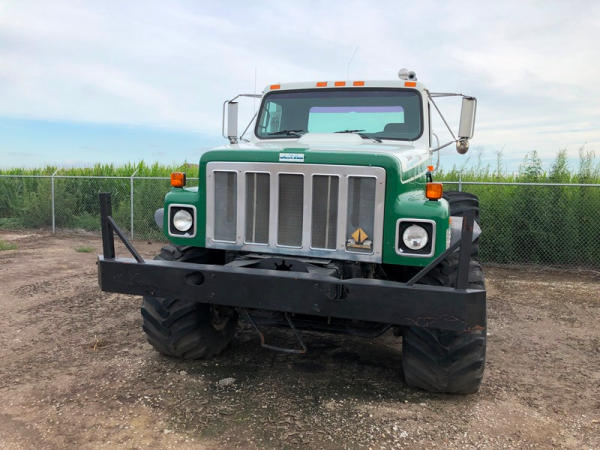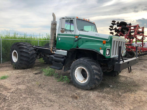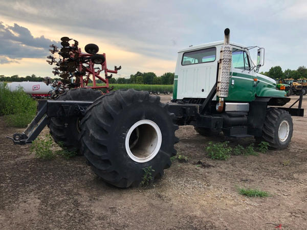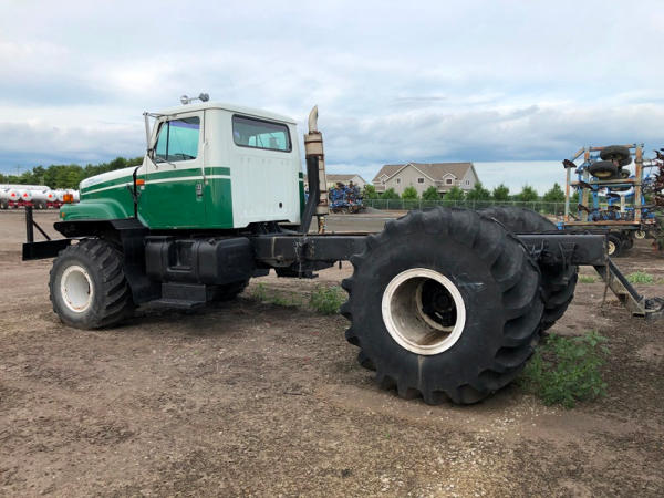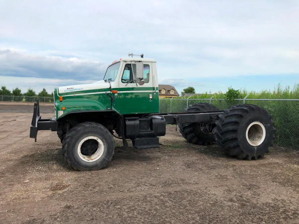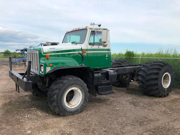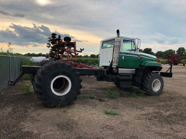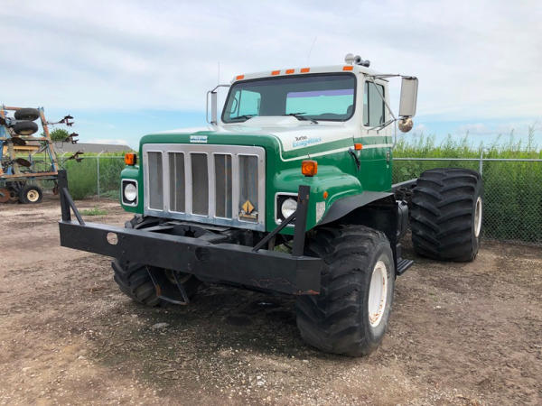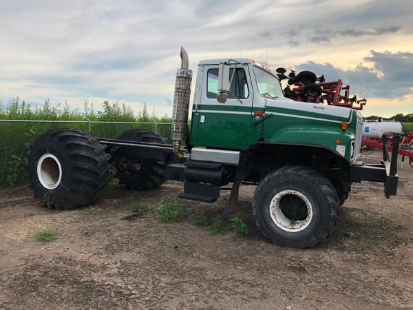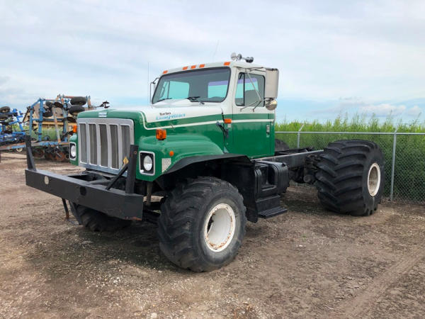 1995 IHC Loral 2710 Turbo Easy-Rider Floater Chassis (NP8882, Unit 150), International diesel engine, Eaton Fuller 10 speed transmission, heat, air conditioning, 48x25.00-20 front tires, 44x43.00-25 rear tires, rear pintle hitch, shows 10,557 hours, shows 108,931 miles.