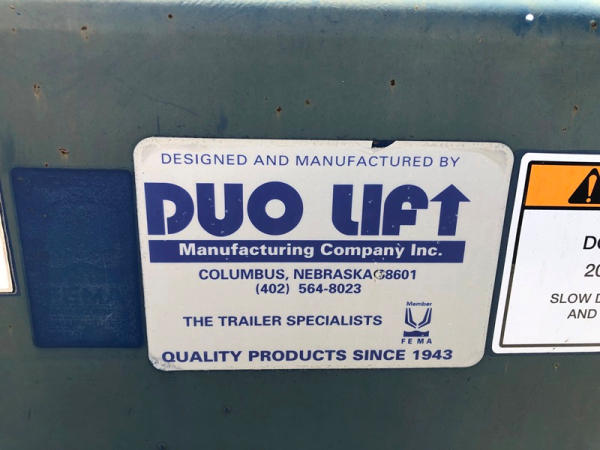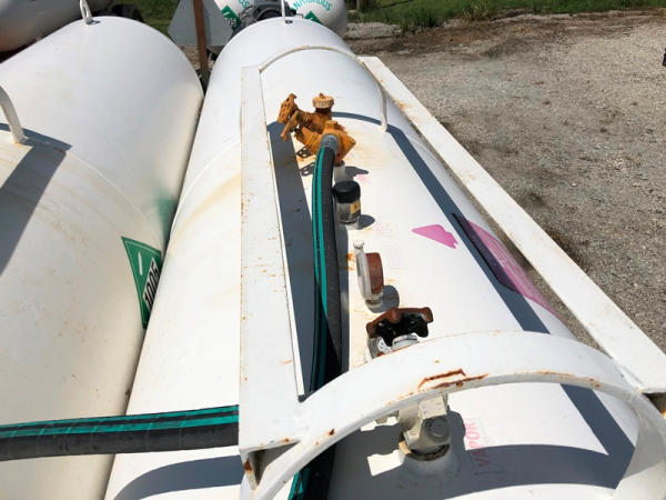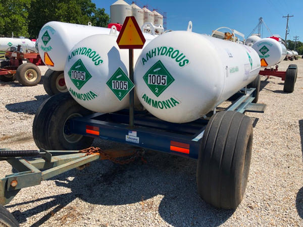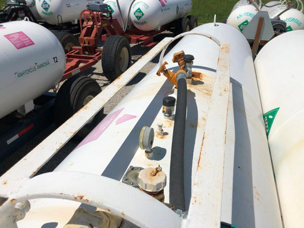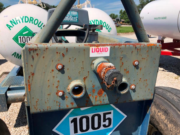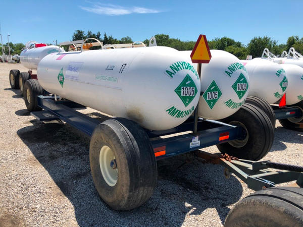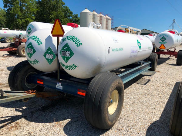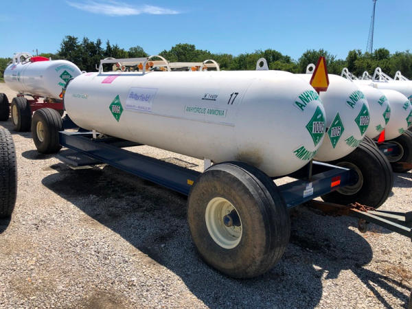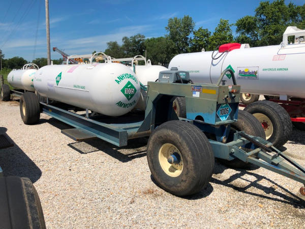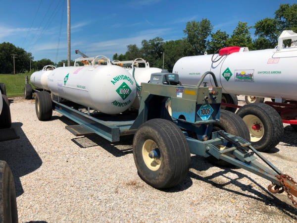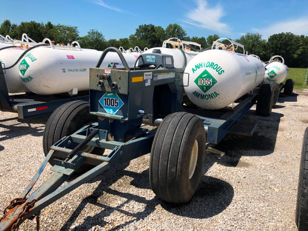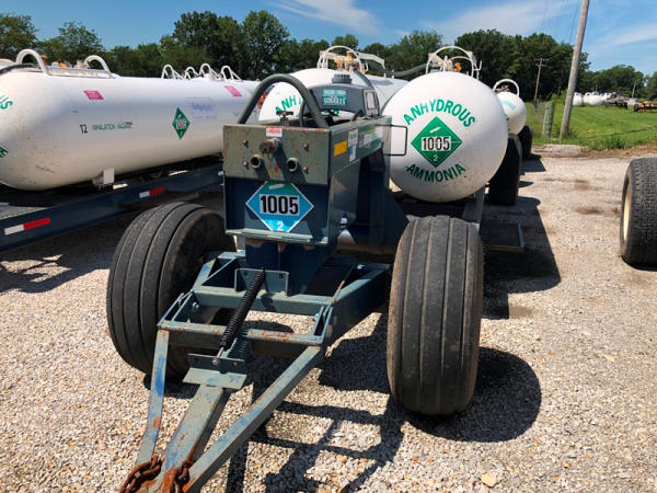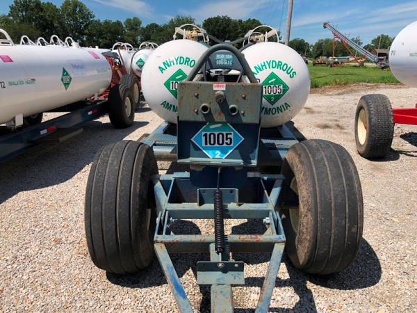 Double NH3 Tanks (NP8837, Tank 17), 1,000 gallon capacity, top front fill, water tank, DUO Lift double tank running gear, spring loaded tongue, side steps, 16.5L-16.1 flotation tires, inspection tag, Tank 1 - data plate, Tank 2 - data plate.
