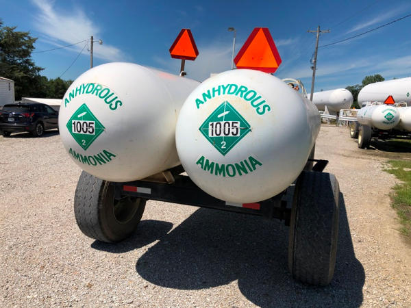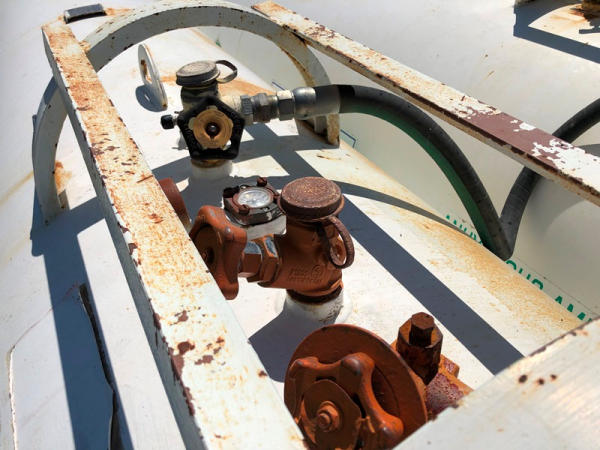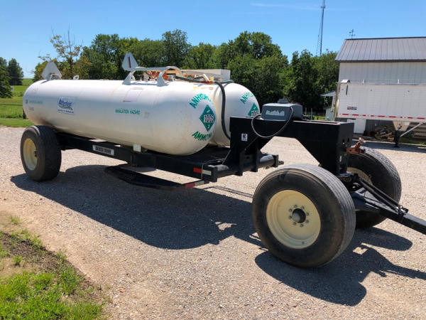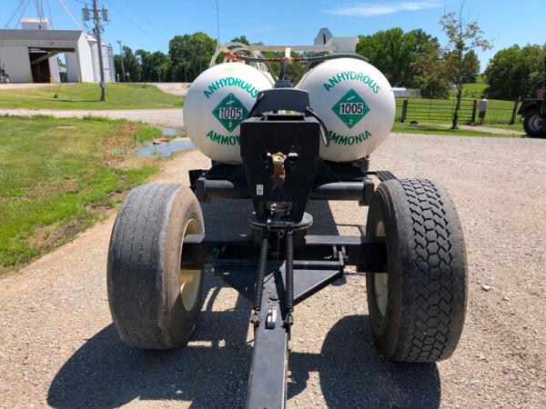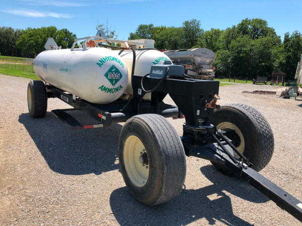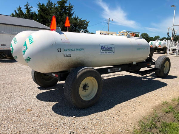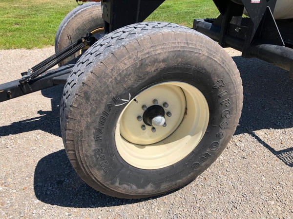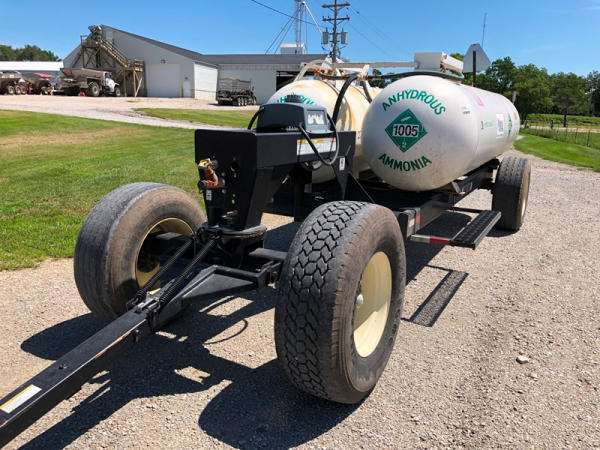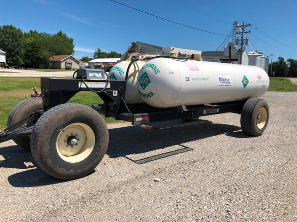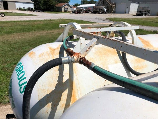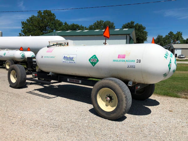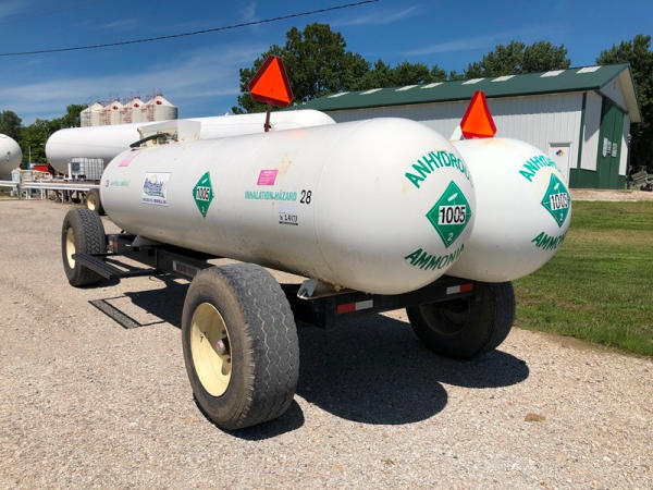Double NH3 Tanks (NP8839, Tank 28), 1,000 gallon capacity, top front fill, water tank, CIRCLE K "Deuce 1000" double tank running gear, spring loaded tongue, side steps, 425/65R22.5 font tires, 385/65R22.5 rear tires, inspection tag, Tank 1 - data plate, Tank 2 - NO date plate.