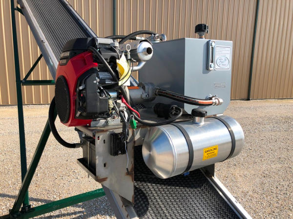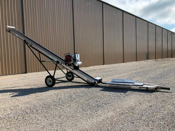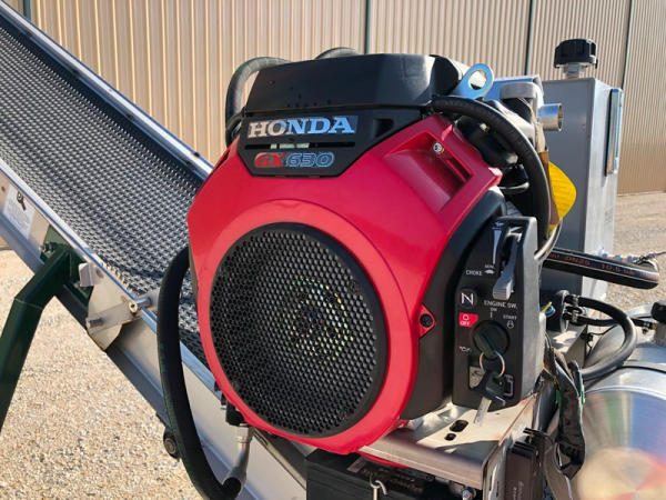 Doyle Field Loader Conveyor (NP8860), stainless steel, portable, 24" belt, completely reconditioned with all new compenents, Honda GX630 gas motor, electric start, 0.2 hours, gas tank, hydraulic tank, ST205/75R15 tires.