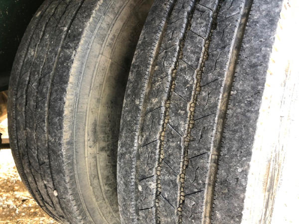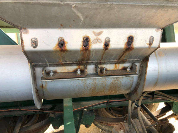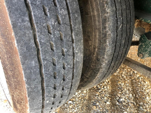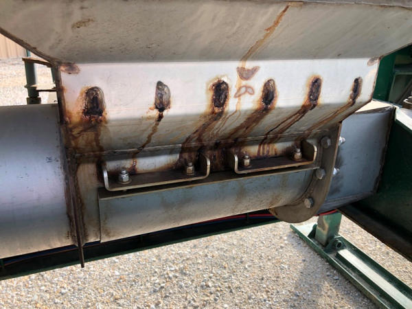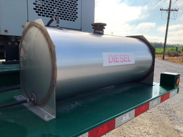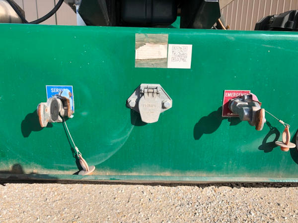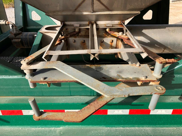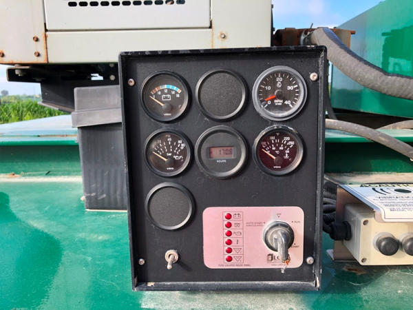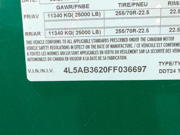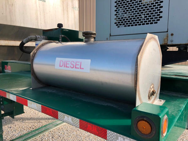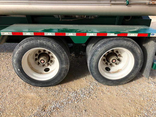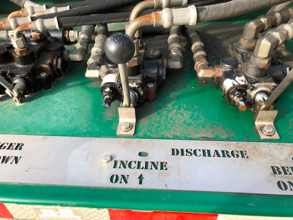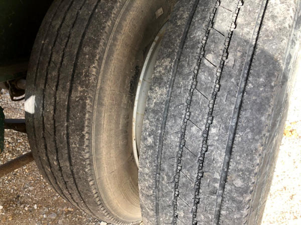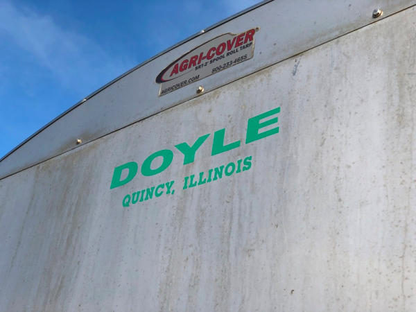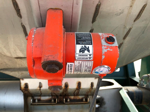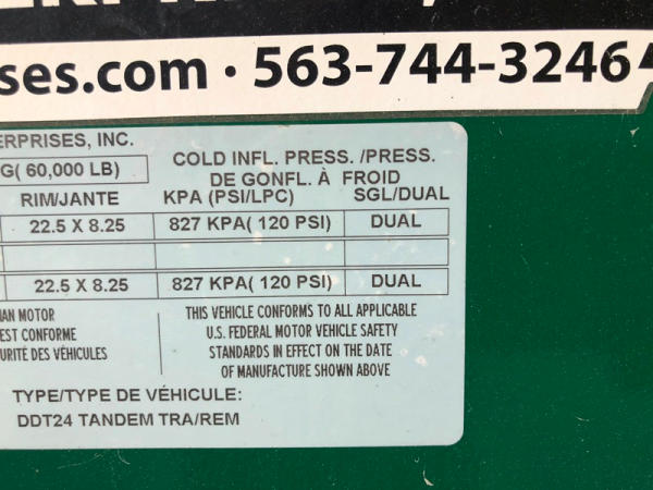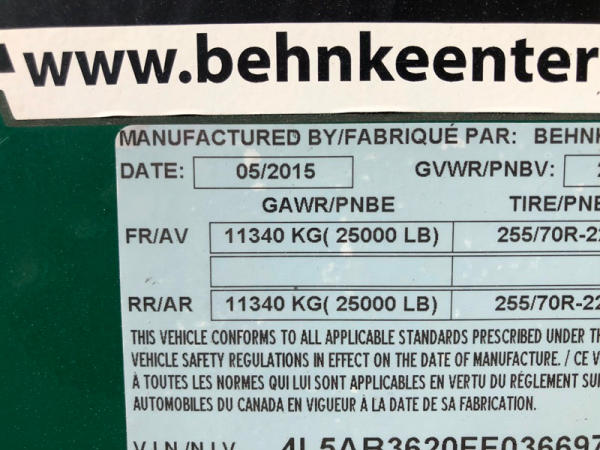 2015 Doyle Dry Tender Trailer (NP8857), 24 ton capacity, 3 compartment (8-8-8), 304 stainless steel, side discharge auger, (3) Vibco vibrators, Agri-Cover SRT-2 spool roll tarp, incline/discharge auger controls, rear ladder, 2014 Kubota 3.6L water cooled diesel engine, 22 gallon diesel tank, 52 gallon hydraulic tank, LOFA Industries, Inc. electric start control panel, shows 170 hours, mounted on 2015 B&B semi trailer, Model DDT24 TANDEM TRA/REM, tandem axle, spring suspension, Haldex ABS, 255/70R22.5 tires, GVWR 60,000lbs.