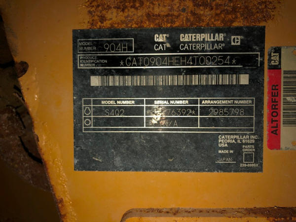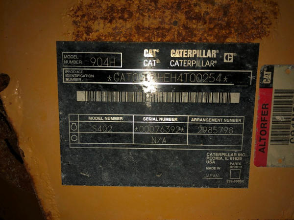 Caterpillar 904H Articulating Loader (NP8855), diesel engine, hydrostatic, OROPS, 12-16.5 tires, approx. 72" bucket, shows 2,624 hours.