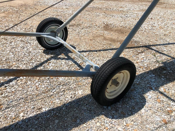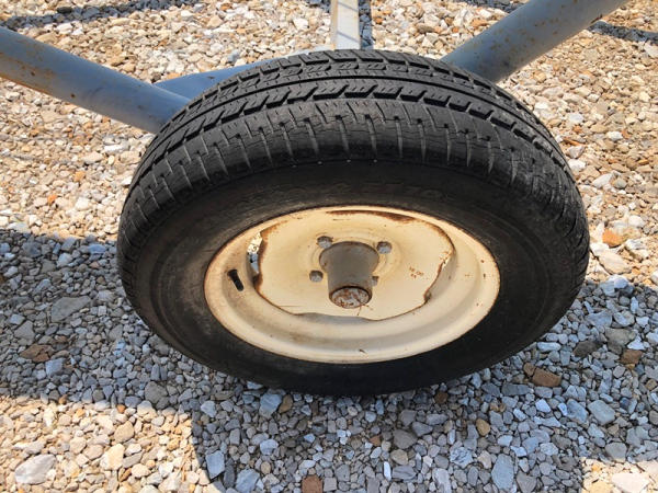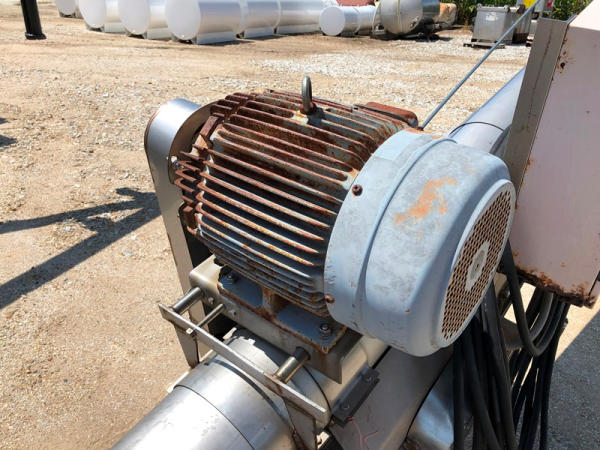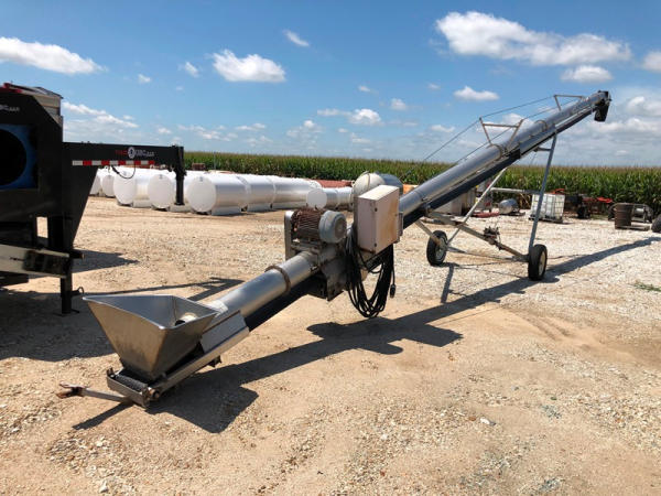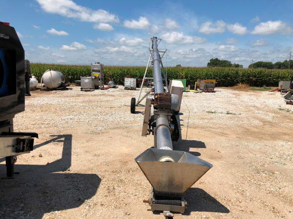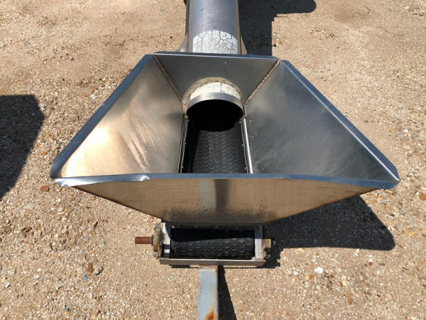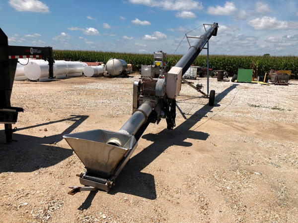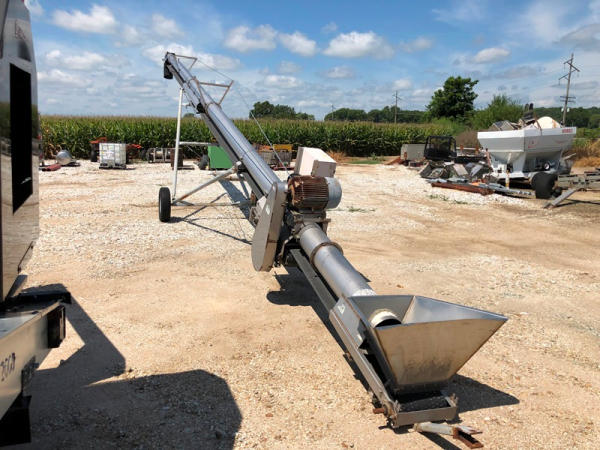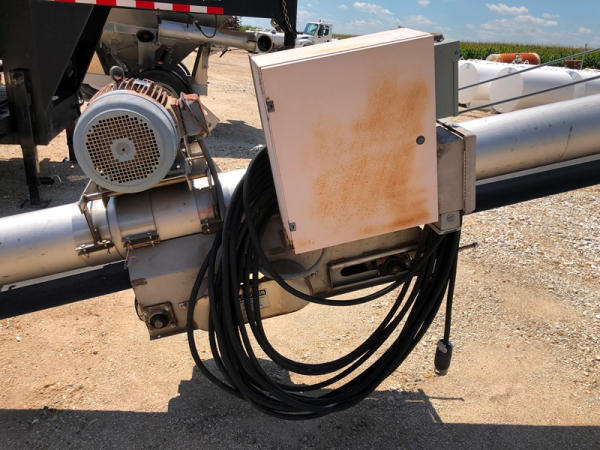 Tube Conveyor (NP8871), approx. 60' length, 12" belt, stainless steel, portable. GE 15HP 3 phase electric motor, P205/75R15 tires.