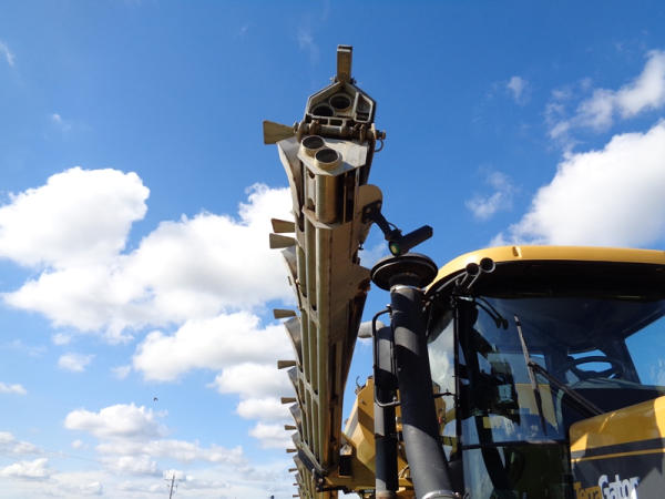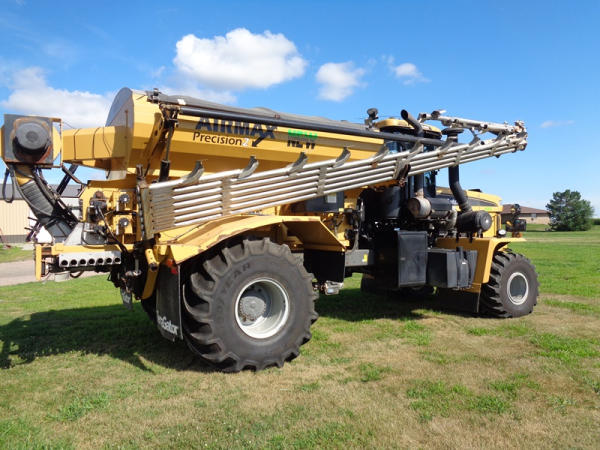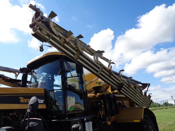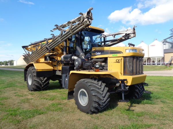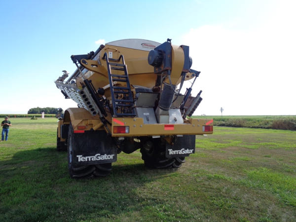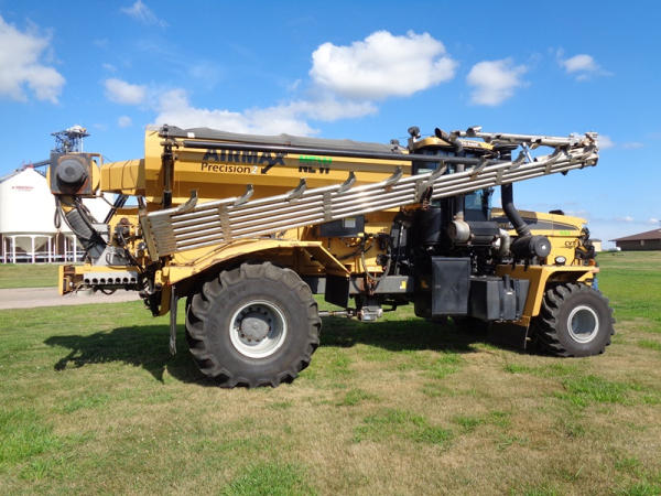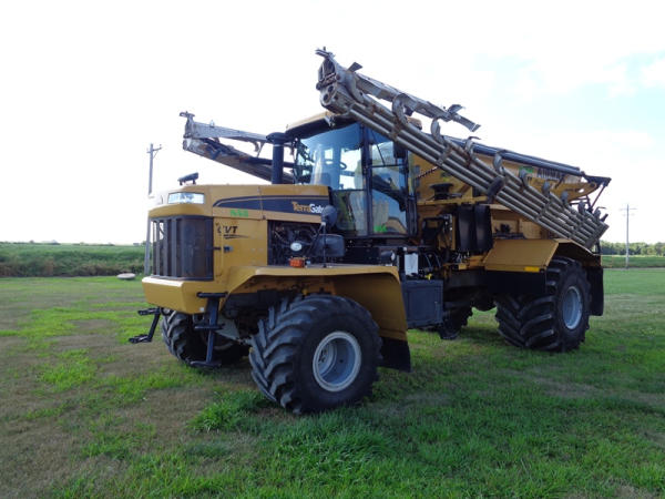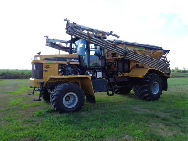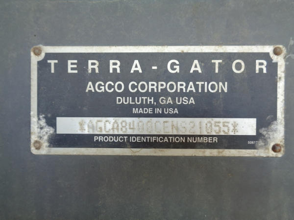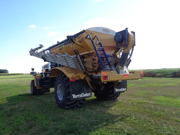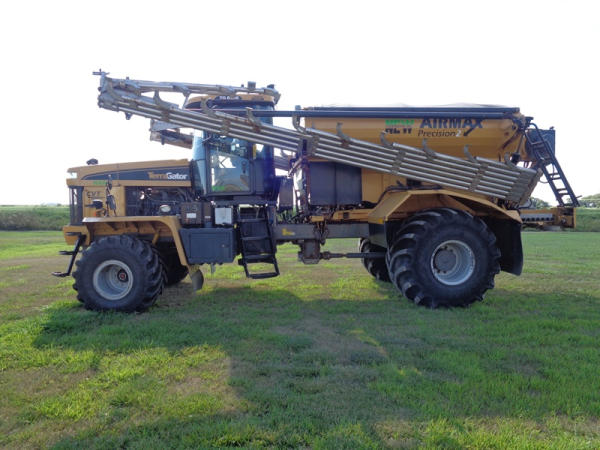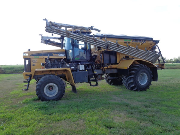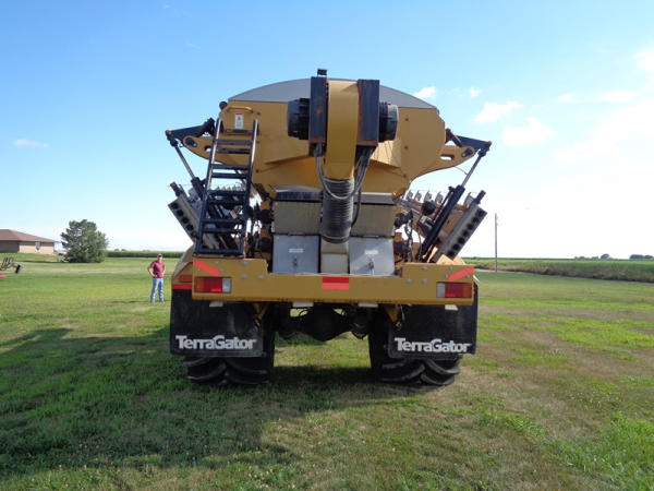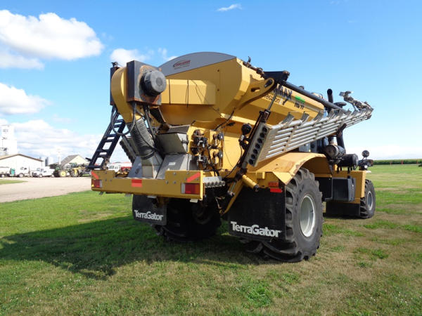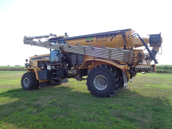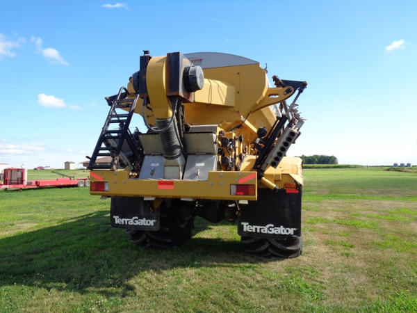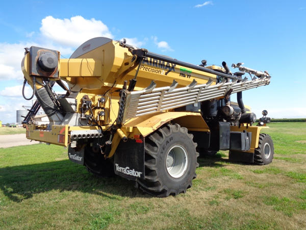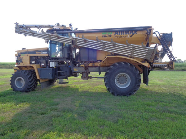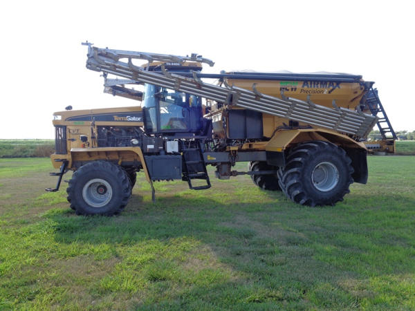 2013 Terra Gator 8400 Dry Floater (PZ2779, Unit 853), AGCO SISU diesel engine, CVT transmission, air conditioning, heat, Am/Fm CD stereo, AirMax Precision 2 dry air flow system (S/N AGCAAMP2CENS31055), 70' stainless steel boom, electric roll over tarp, Good Year 48x31.00R20 front tires, Good Year Optiterra 1000/50R25 rear tires, Raven Viper Pro, Raven SmarTrax, Slingshot Field Hub, shows 2919 hours.