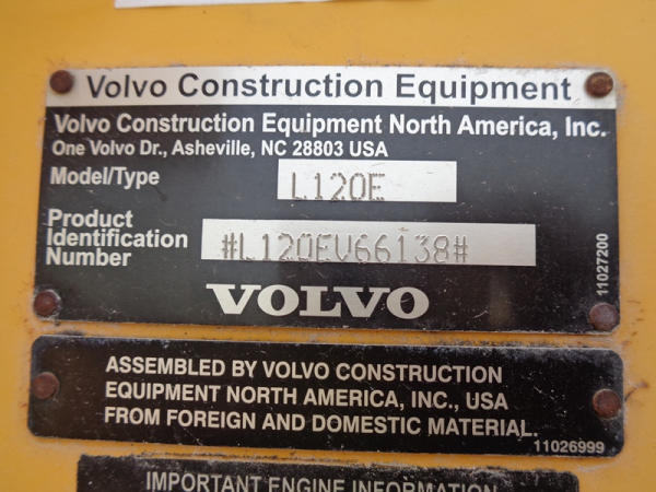 2007 Volvo L120E Payloader (PZ2760, Unit 649), Volvo diesel engine, shuttle shift transmission, air conditioning, heat, Am/Fm CD stereo, cab, lights, Volvo model 82041 bucket, New Michelin XHA2 23.5R25 tires, shows 13,388 hours.