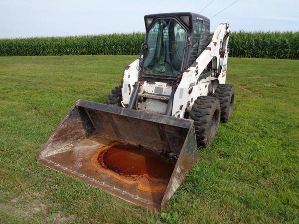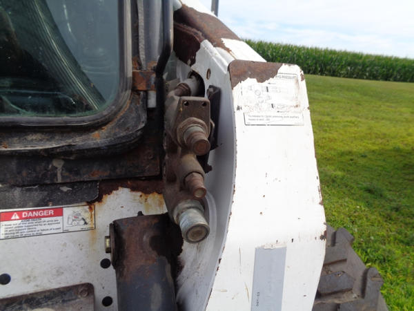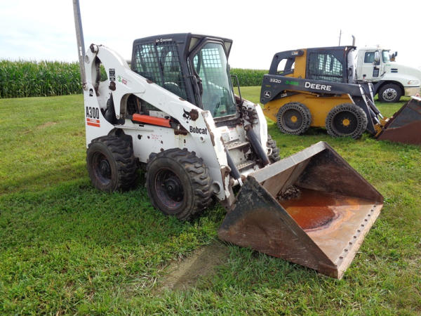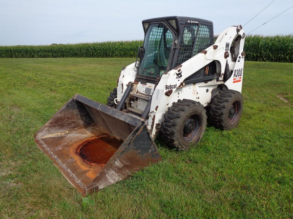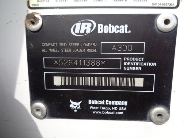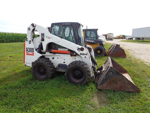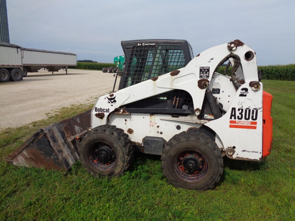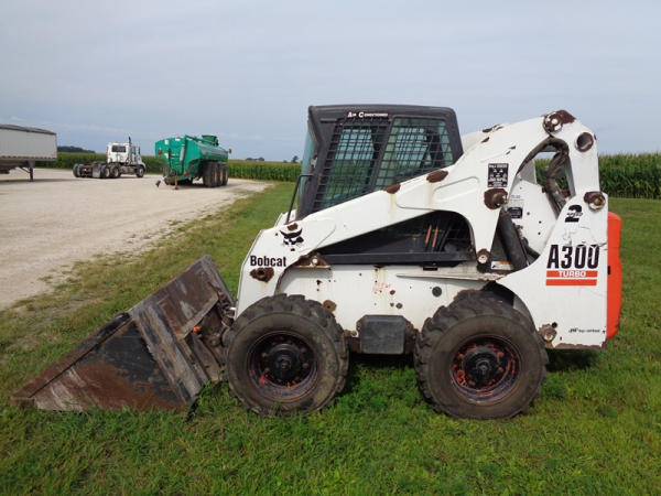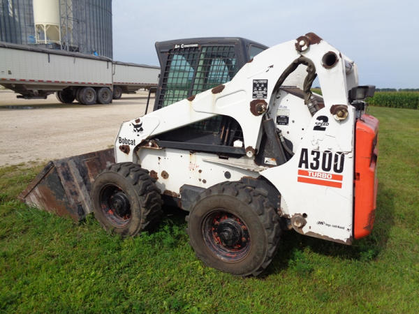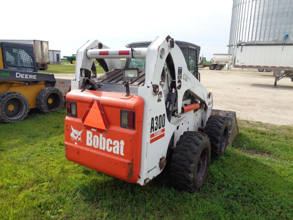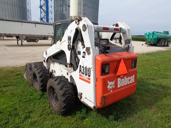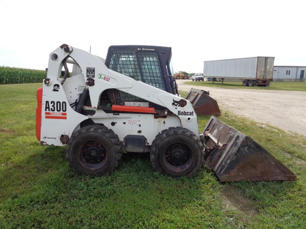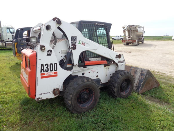 Bobcat A300 Skid Steer Loader (PZ2764, Unit 3-832), Turbo diesel engine, hydrostatic transmission, air conditioning, heat, cab, lights, auxiliary hydraulics, bucket, 12-16.5 tires, shows 3759 hours.