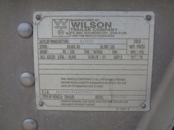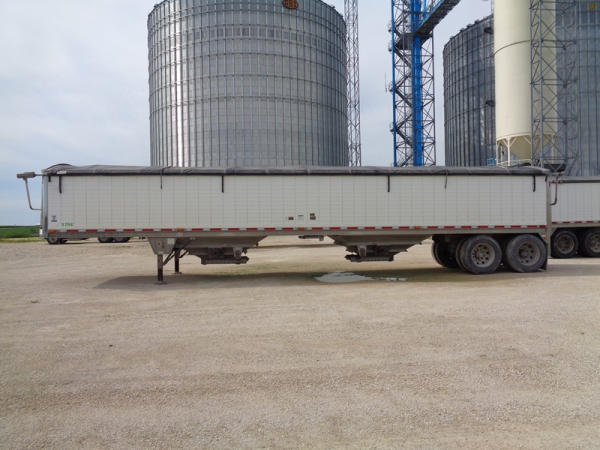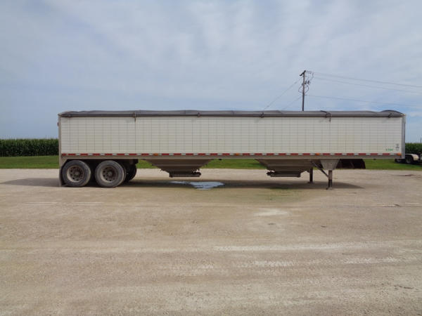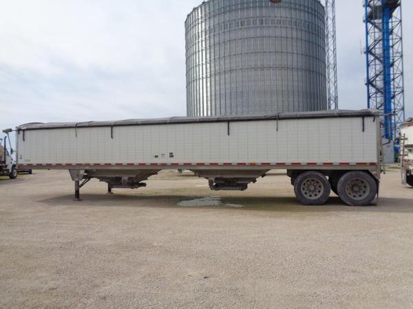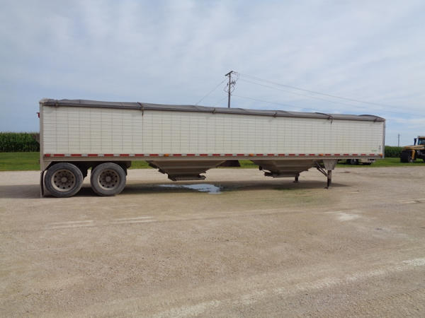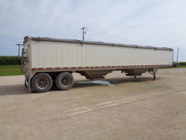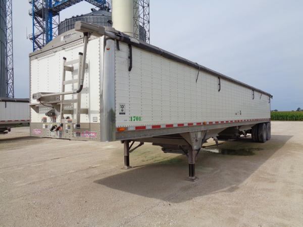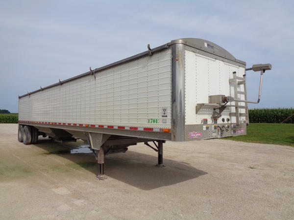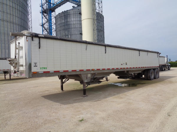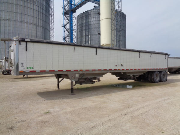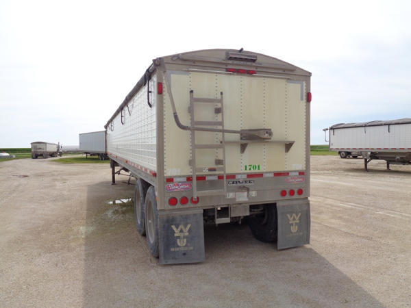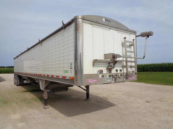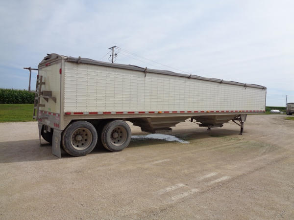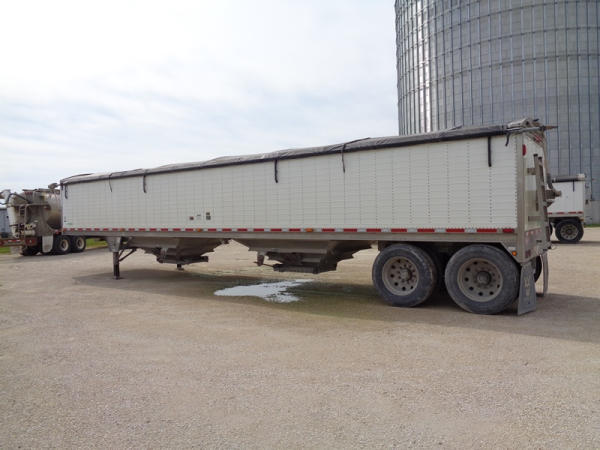 2011 Wilson Grain Trailer (PZ2765, Unit 1701), 2011 Wilson model DWH - 500 PaceSetter aluminum hopper bottom grain trailer, tandem axle, air ride suspension, electric roll over tarp, 285/75R24.5 tires, aluminum rims.