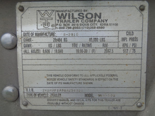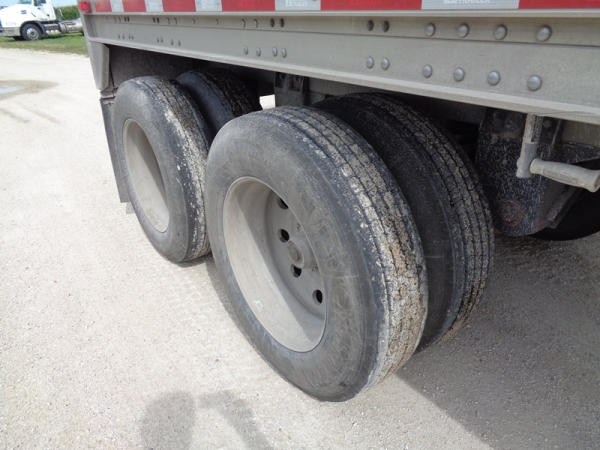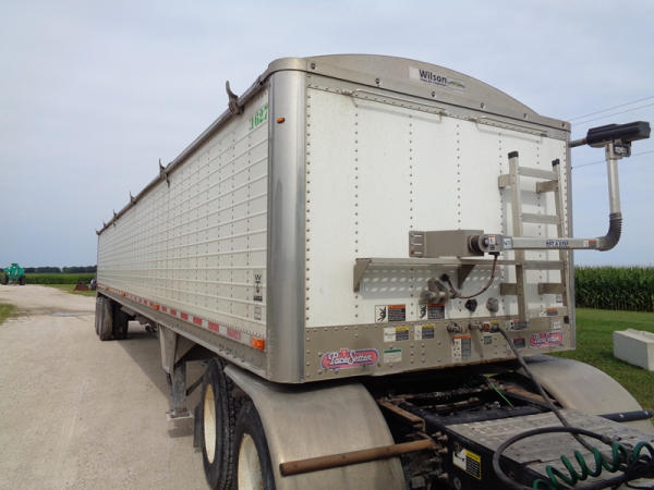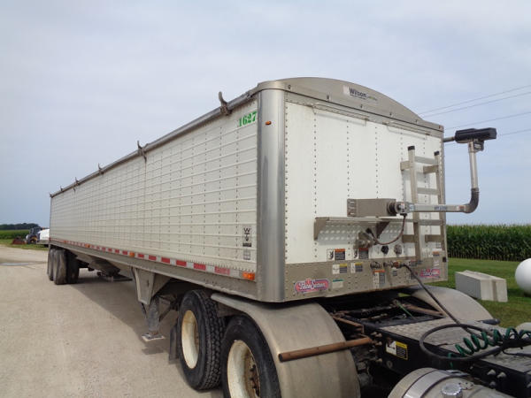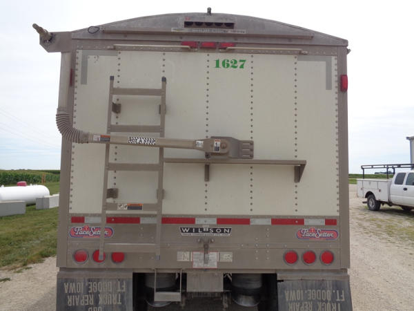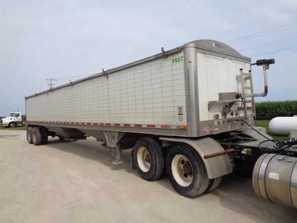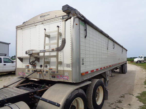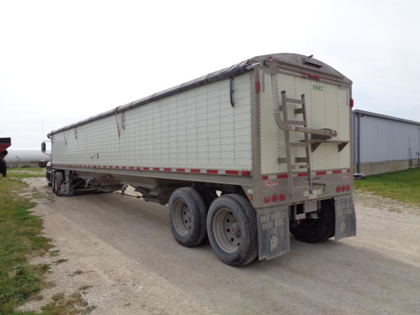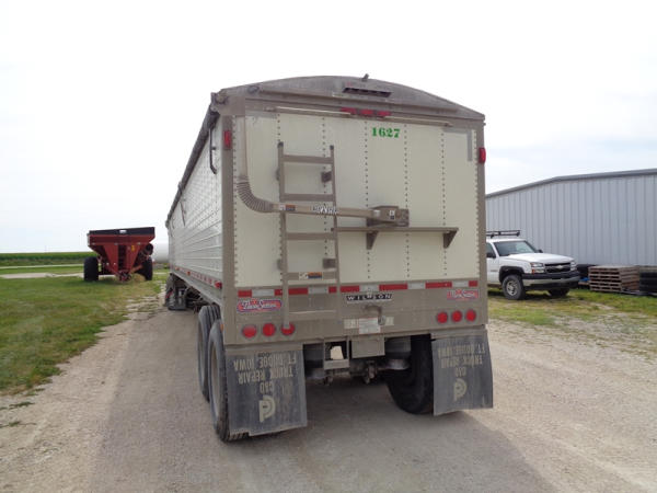 2011 Wilson Grain Trailer (PZ2769, Unit 1627), 2011 Wilson model DWH - 500 PaceSetter aluminum hopper bottom grain trailer, tandem axle, air ride suspension, Shur-Co 4500 series HD electric roll over tarp, 285/75R24.5 tires, aluminum rims.