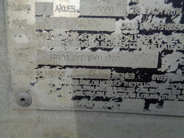 2000 Trailmobile Van Trailer (PZ2754, Unit 1625), 2000 Trailmobile, van trailer, cargo doors, tandem axle, air ride suspension, sliding tandems, 11R22.5 tires, aluminum rims.