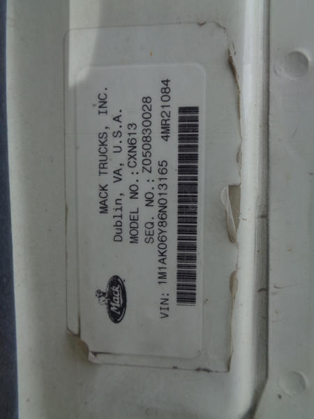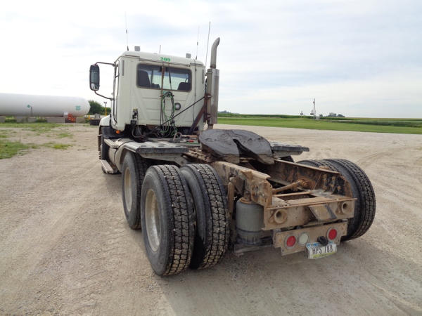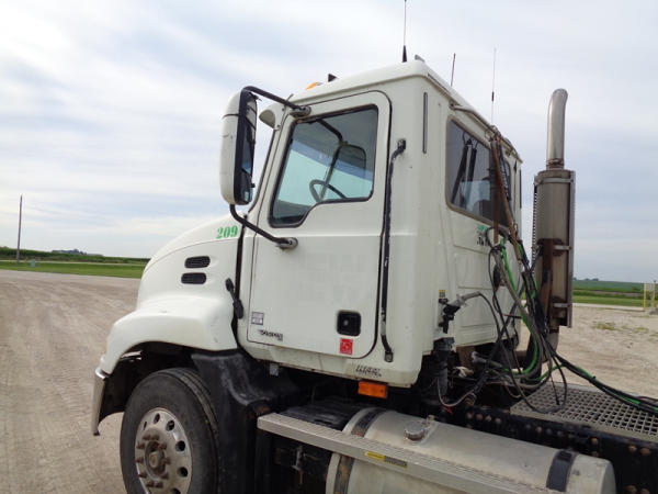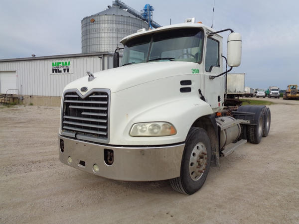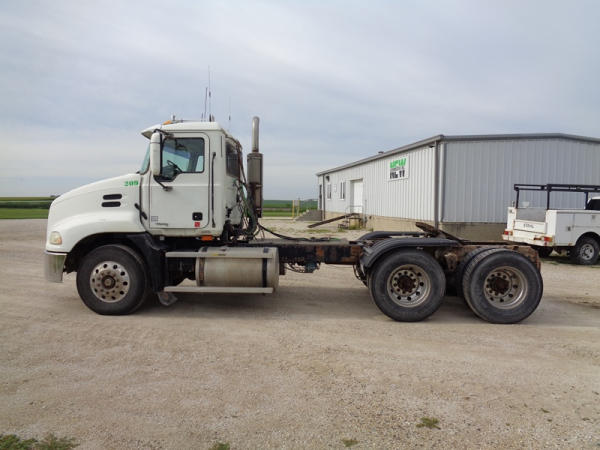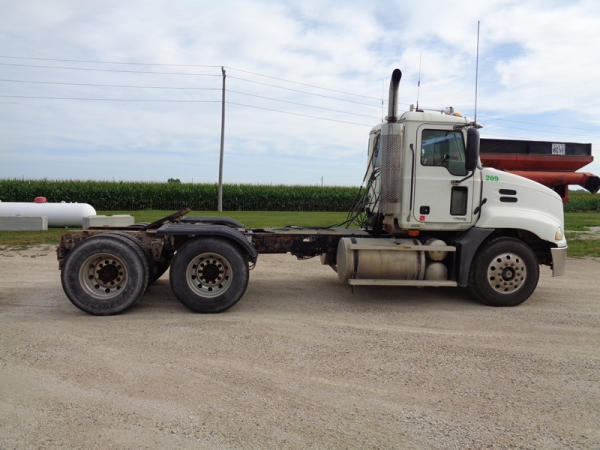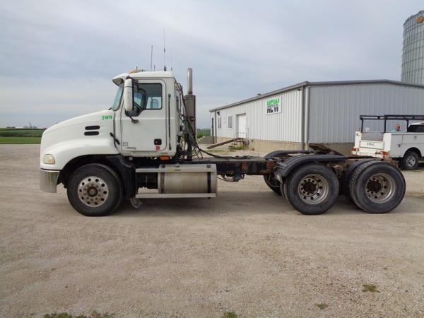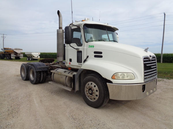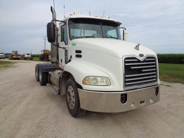 2006 Mack Vision CXN613 Day Cab Truck (PZ2758, Unit 209), Mack diesel engine, 13 speed transmission, air conditioning, heat, Am/Fm CD stereo, cruise control, engine brake, power windows & locks, tandem axle, full screw, air ride suspension, 5th wheel, 11R22.5 tires, aluminum rims, fenders, miles are unknown approx. 750,000 plus.