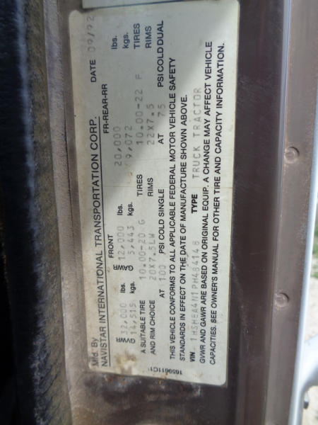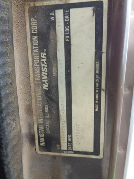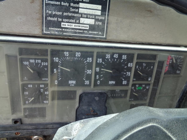 1993 IHC 8200 Truck (PZ2773, Unit 424), Cummins L10 - 310E diesel engine, Spicer 7 speed transmission, air conditioning, heat, cruise control, tandem axle, 11R22.5 front tires, 275/80R22.5 rear tires, shows 635,601 miles.