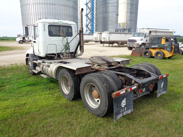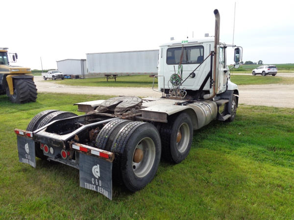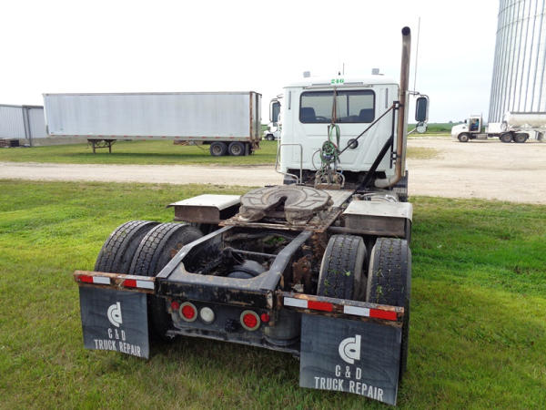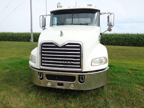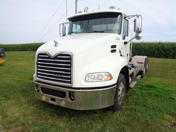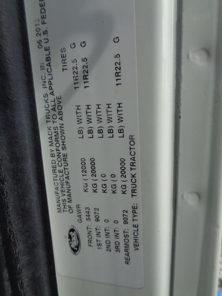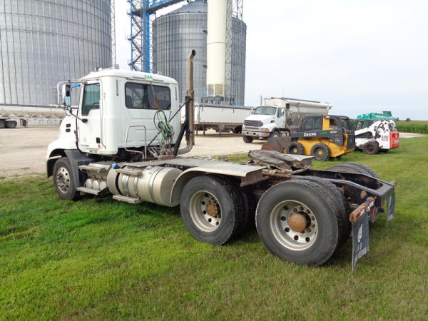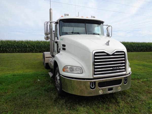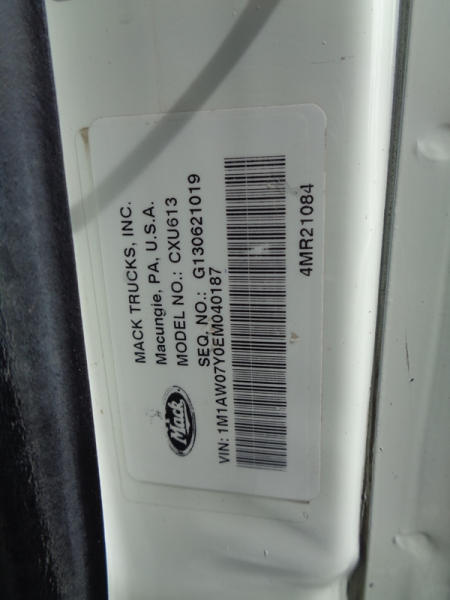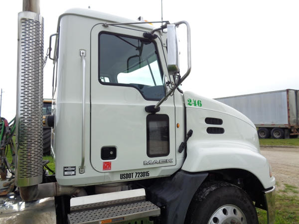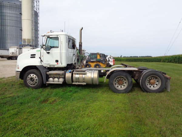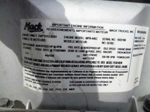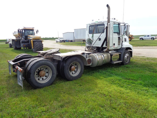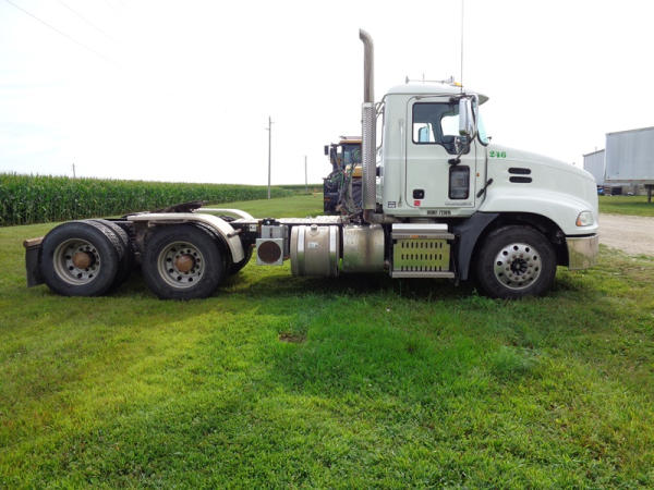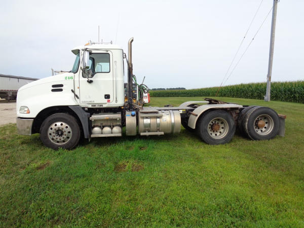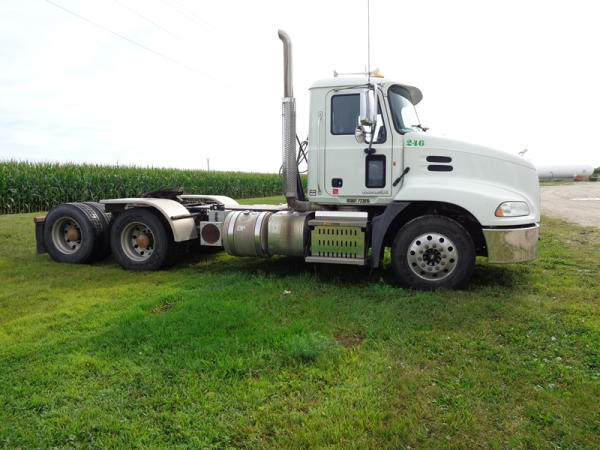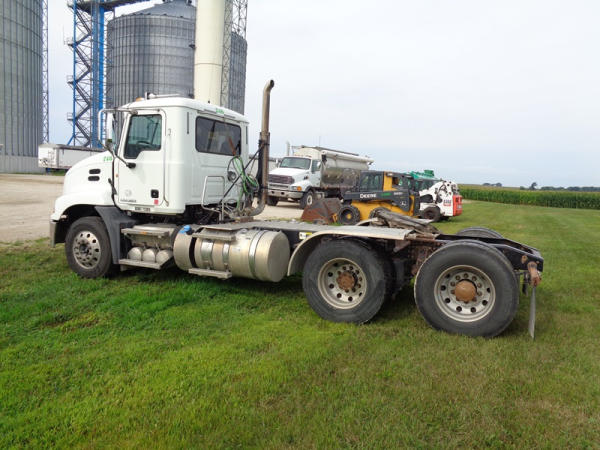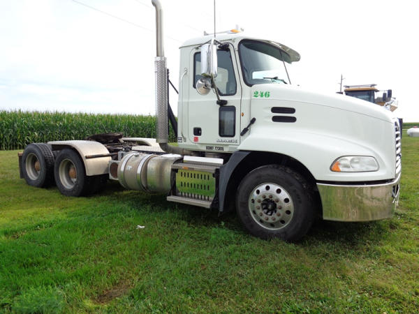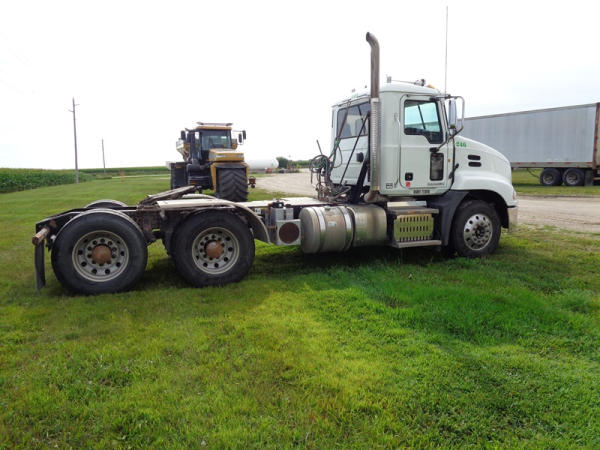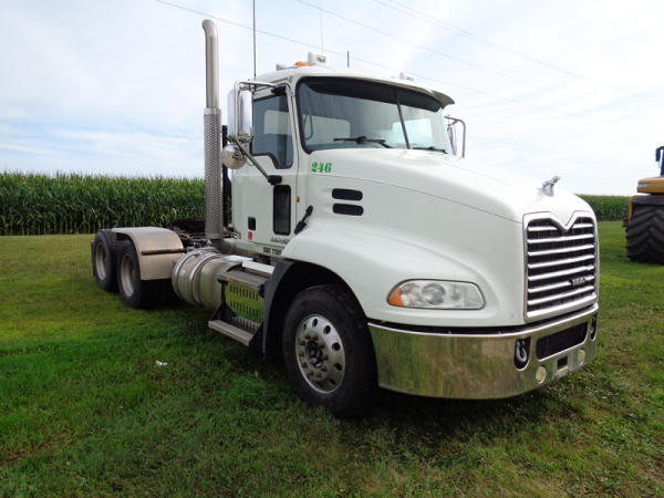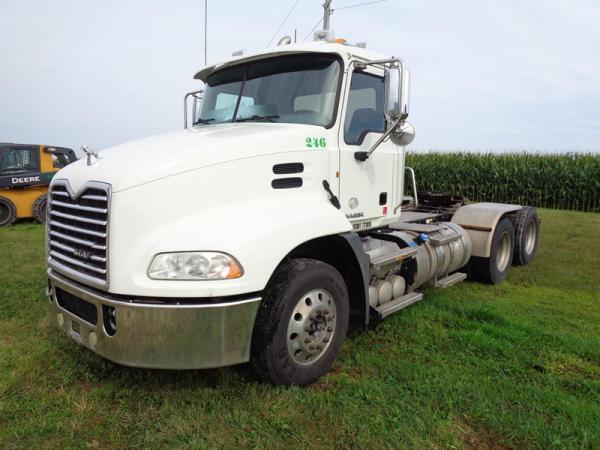 2014 Mack CXU613 Day Cab Truck (PZ2762, Unit 246), Mack MP8-445C diesel engine, M Drive automatic transmission, air conditioning, heat, Am/Fm CD stereo, cruise control, engine brake, power windows & locks, tandem axle, full screw, air ride suspension, 5th wheel, wet kit, 295/75R22.5 tires, aluminum rims, fenders, shows 355,461 miles.