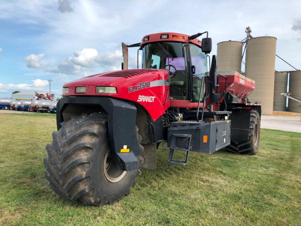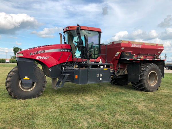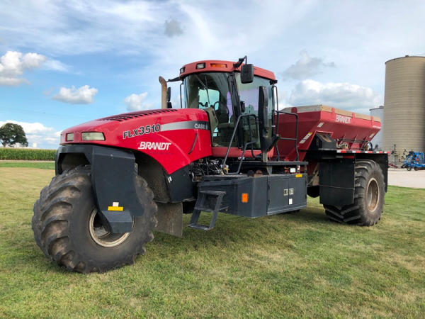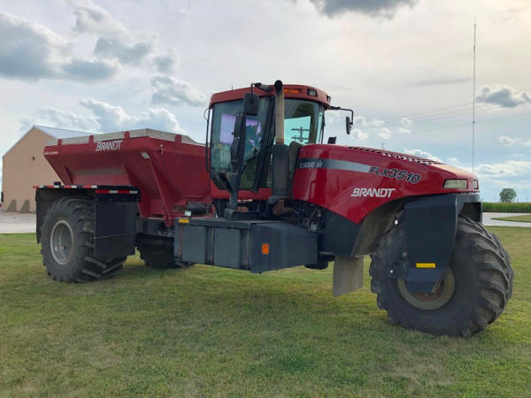 2004 CaseIH FLX3510 Dry Floater (NP8879), 8.9 diesel engine, Allison automatic transmission, air conditioning, heat, Am/Fm cassette radio, New Leader L3020 GT stainless steel dry spreader box, twin spinner, all hydraulic, Alliance 1050/50R32 tires, Ag Leader monitor, autosteer VRT, shows 4378 hours.