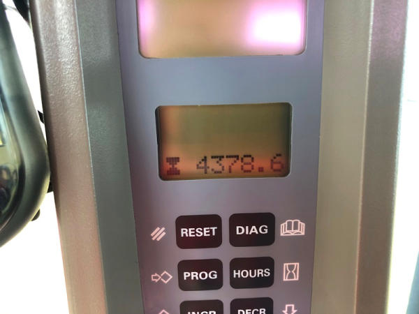 Notes: Changed oil filter at 4378 hours, serviced every 200 hours, 2019 New drop box transmission (Saddler), 2018 New Alliance rear tires, rebuilt seals on spinner motors, New plate and blades, 2017 New front/back sprockets/bearings on bed, New ECM on engine, 2016 New gear box on bed.
