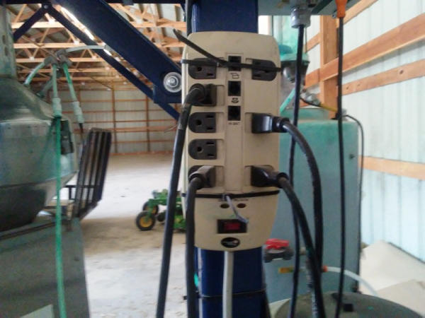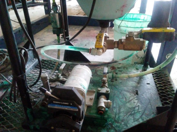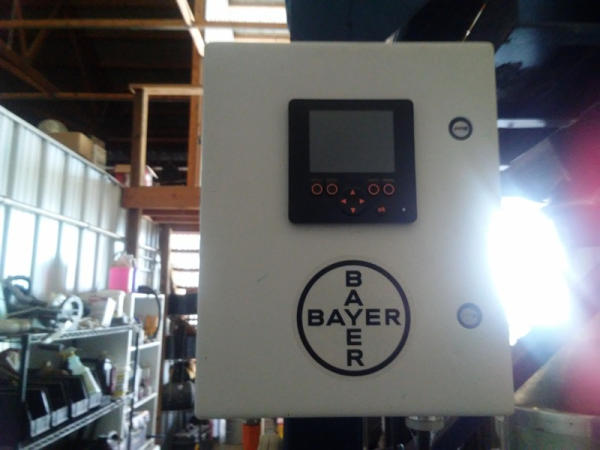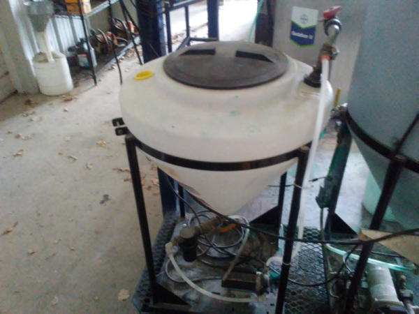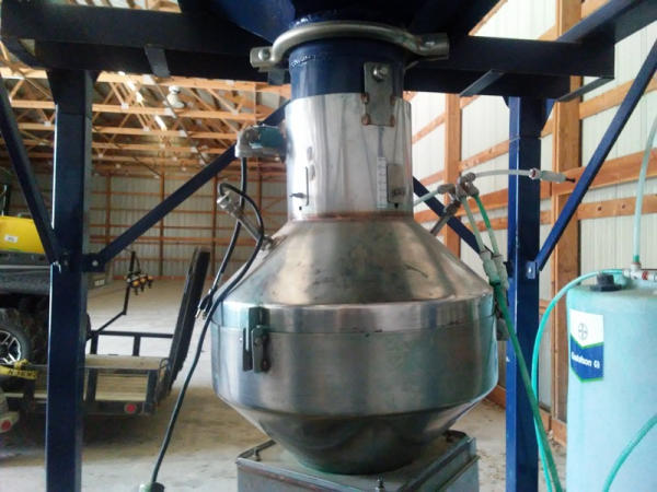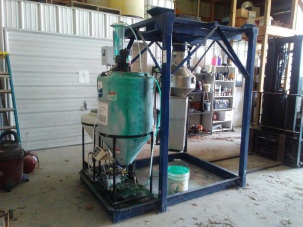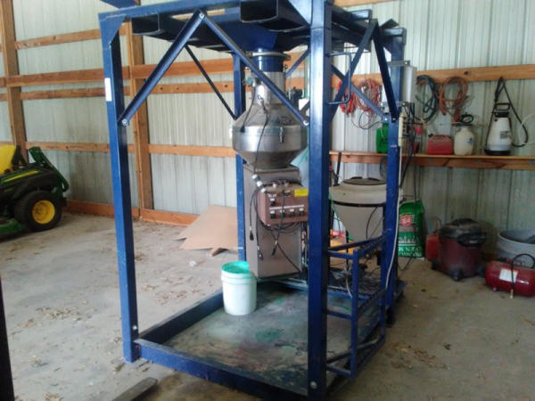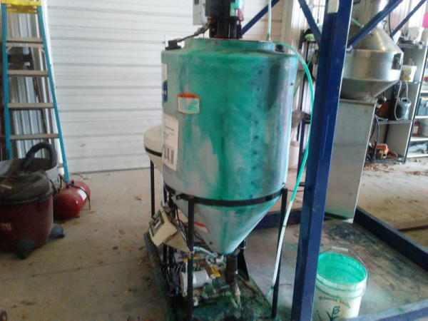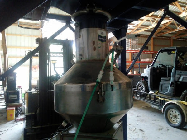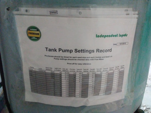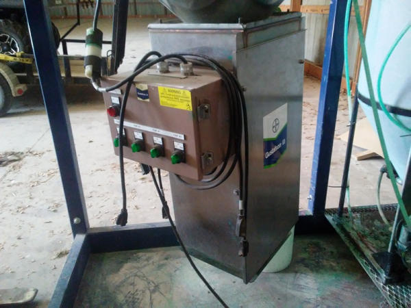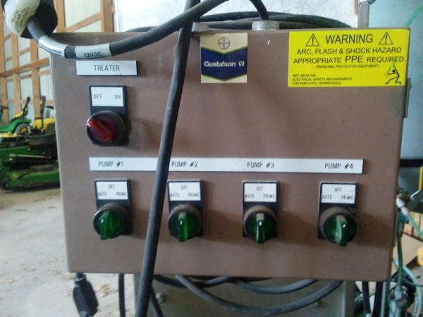 Gustafson CS1700 Seed Treater (KMK988), stand for conveyor or seed box, 60 gallon treatment tank with agitation motor, 30 gallon inoculant tank with pump, Cole Parmer variable speed motor controller for the peristaltic pump, calibration tube, easy load, treater and 4 pump control panel, eight outlet power supply.