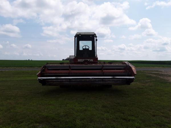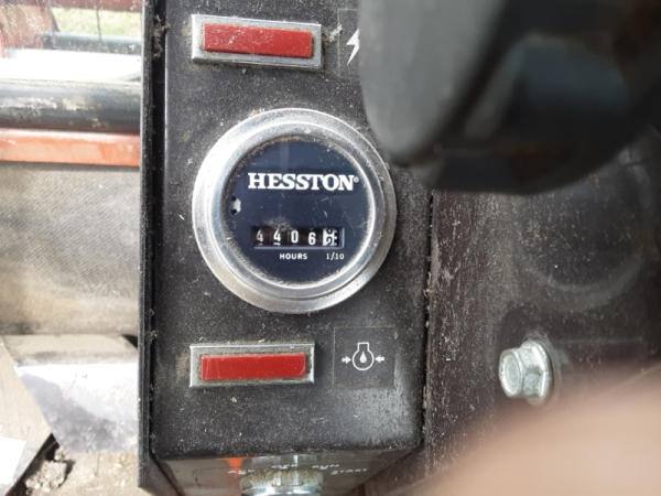 Hesston 6555 Windrower (CL150), 4406 hours, diesel, the tractor part is in great shape, everything works as it should, engine runs strong, hydrostatic drive.
