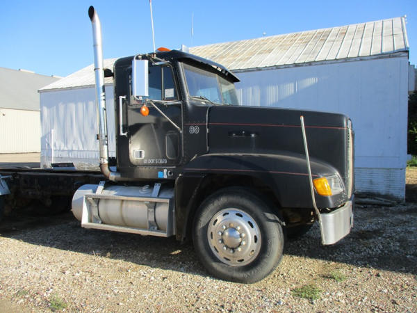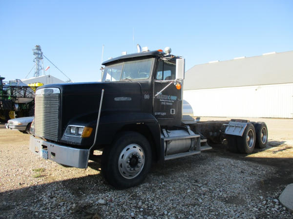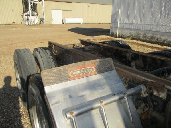 1990 Freightliner Cab/Chassis (DR3018), Cat diesel engine, 9 speed transmission, tandem axle full screw, air ride suspension, engine brake, 18' of frame rail behind cab, air conditioning, 24.5 tires, shows 216,331 miles.
