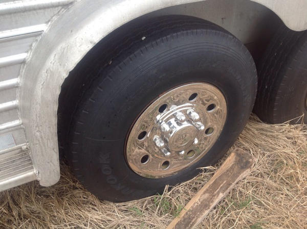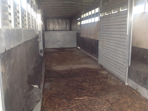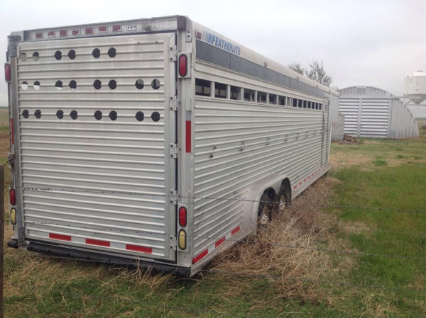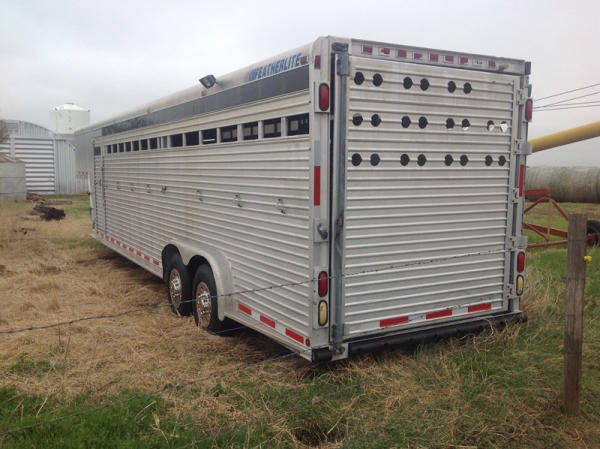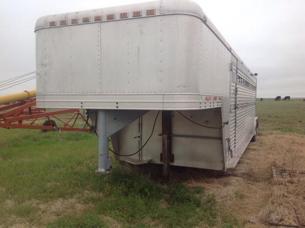 1988 Featherlite (DR1916), 30' aluminum goosneck trailer, rear swing door, walk in doors each side, center swing gate, front neck storage, tandem axle, chrome wheel covers, 7.50R16 tires.