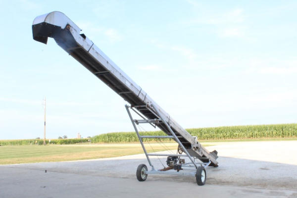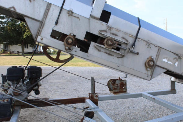 Krause Stainless Steel Belt Conveyor (ED1091), 40' X 18" portable conveyor, 13 HP Predator 420CC gas motor and 10 HP Toshiba electric motor included, electric motor mount is already on conveyor.