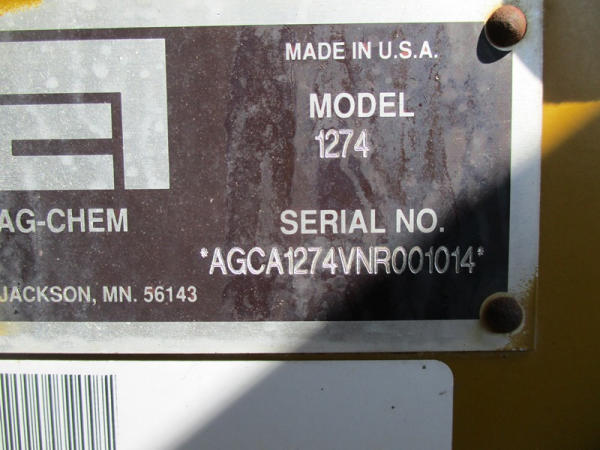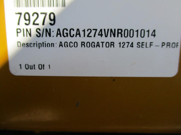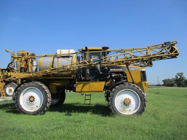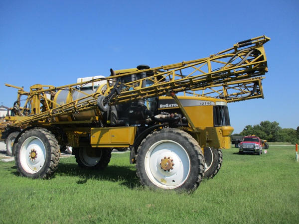 2006 RoGator 1274C Sprayer (DR3141), Cat diesel hydrostatic drive, 1200 gallon stainless steel liquid system, 120' boom, 30" spacing's, saddle mount poly rinse tank, boom hydraulic sensing wheels, poly chemical inductor, stainless steel foam tank, Raven Smartrax, Envizio Pro controller with swath control light bar, 380/90R46 row crop tires, shows 27,244 miles, 3975 hours.