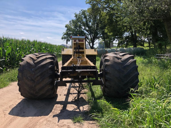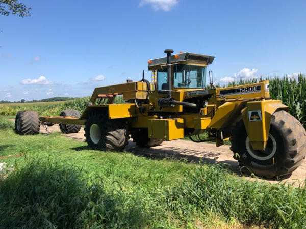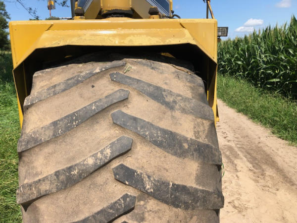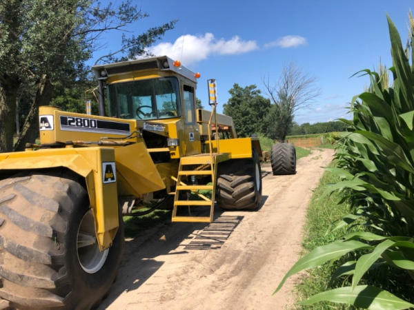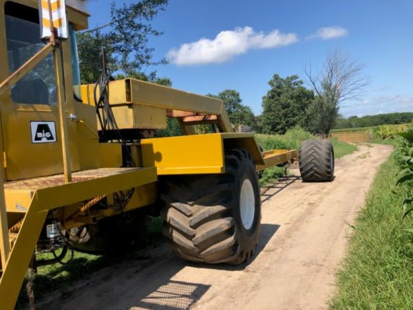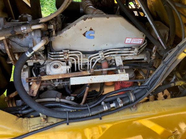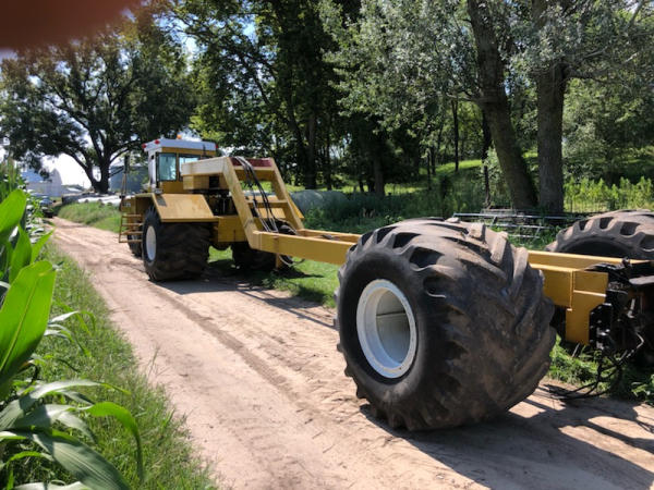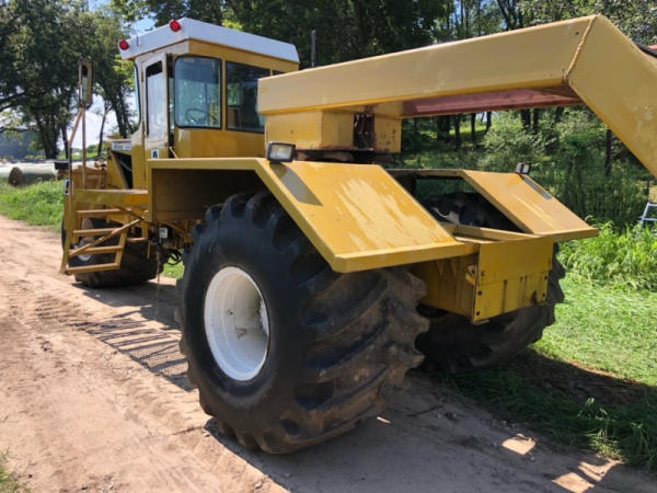 Big A 2500 Floater (LD246), Big A 2500 floater with homemade trailer included, trailer is 19'6" on flat part, Cummins diesel engine, low hours on newer engine, replaced 5-6 years ago and has had hardly ran since, low hours on engine, Allison automatic transmission, heat works, A/C may work, 66x43.00-25 tires, one tire 70% and the rest 40-50%, was previously set up for hauling manure, injector and tank removed, shows 25,216 miles, shows 3,588 hours, model number is A2500.
