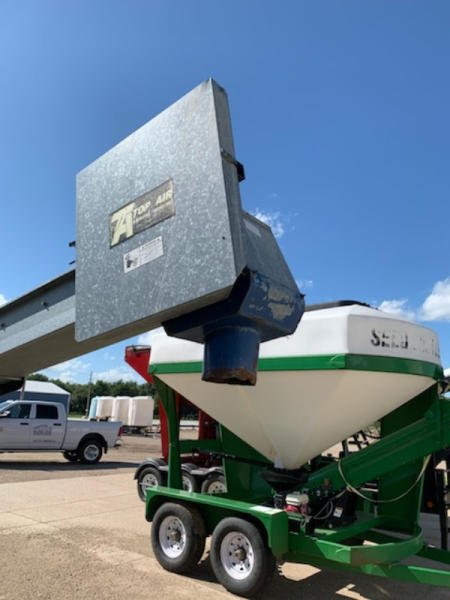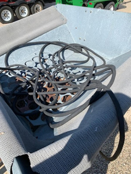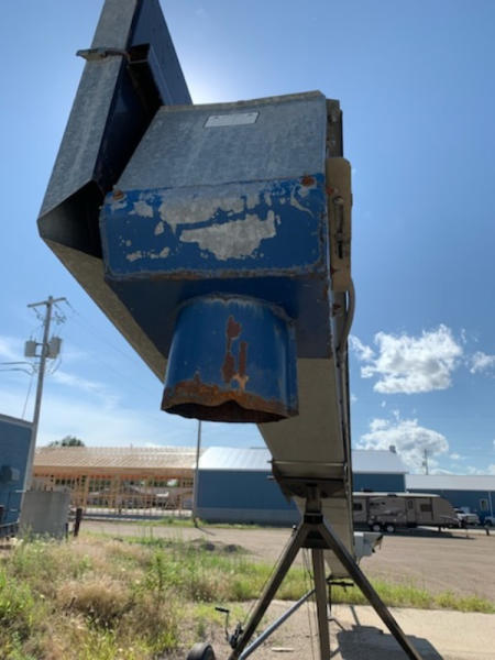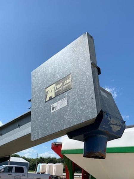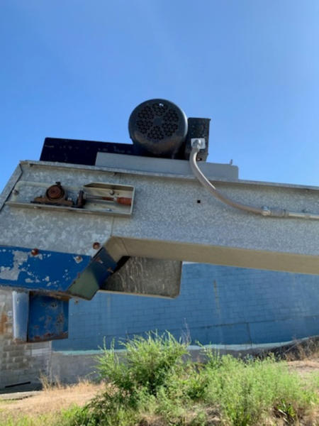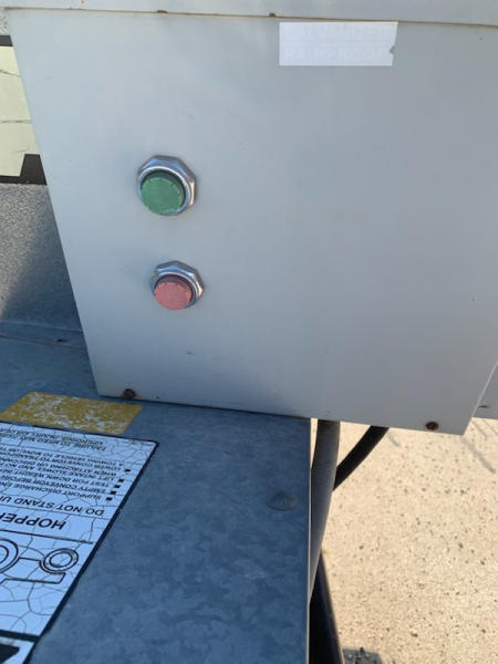 Top Air Conveyor (ED1083), 29 foot long, 12" wide, aluminum, extra big hopper, has start-stop button, conveyor is in working order.