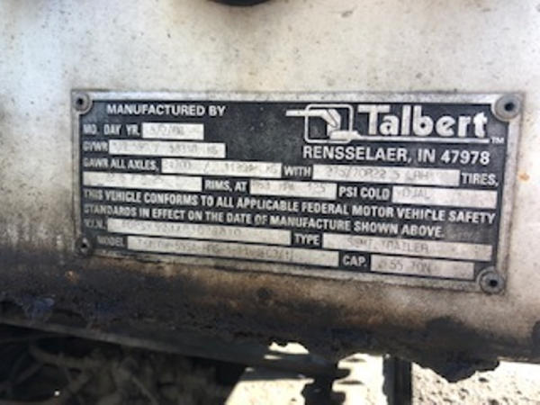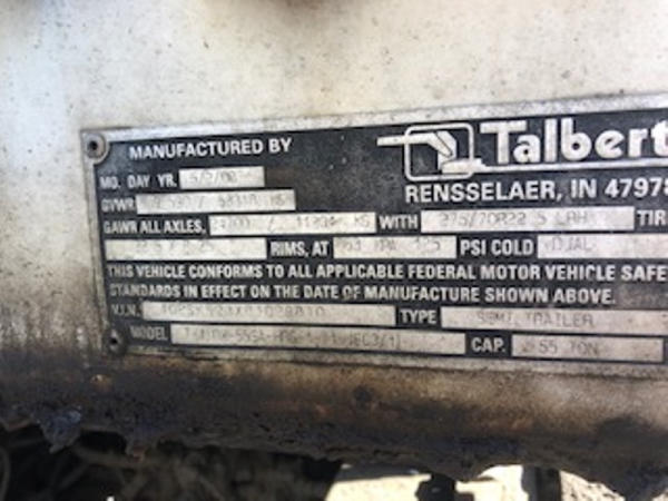 2008 Talbert Lowboy Trailer (ED1096), 55 ton, air lift, 3rd axle with option to put on 4th axle, non ground bearing, tires are in good condition, size 275/70R22.5.