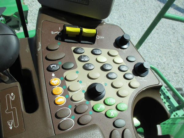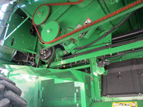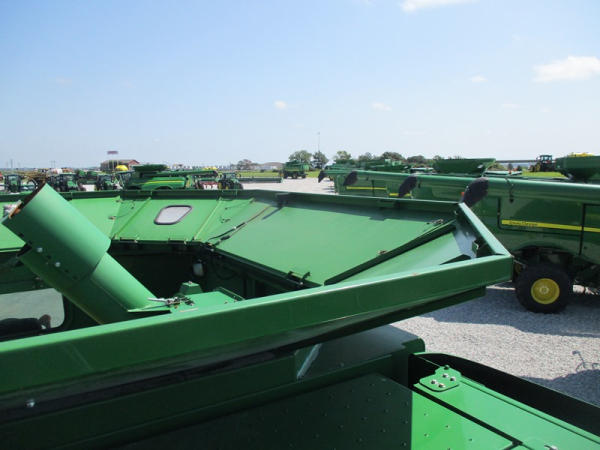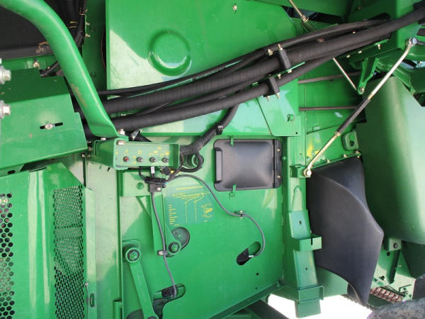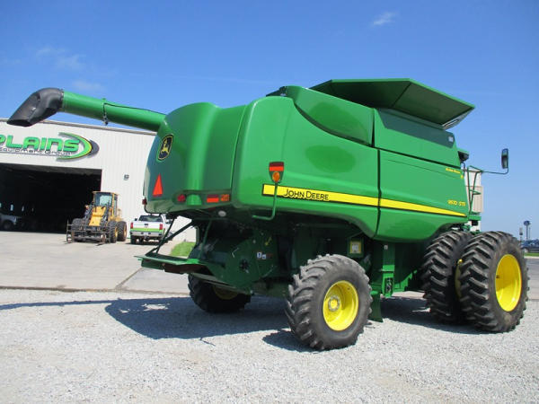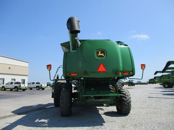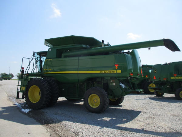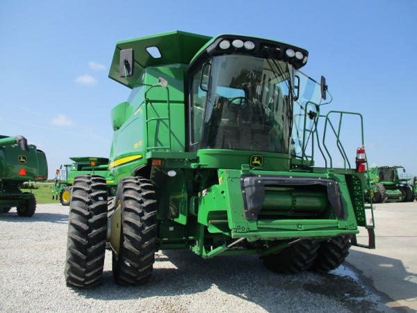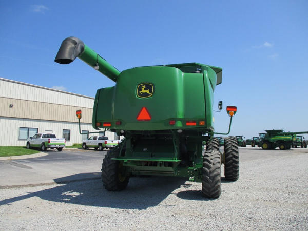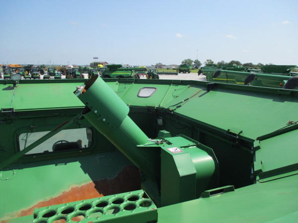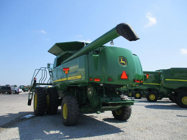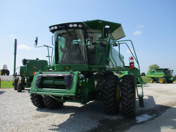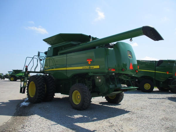 2008 John Deere 9570 STS Combine (DR3142, Unit 184880), John Deere diesel engine, hydrostatic drive, premier cab, grain tank extensions, 2 speed chopper w/spreader, single point hookup, contour master w/reverser, lateral tilt, Green Star 3 harvest monitor, 6.6 M unloading auger, AM/FM CD radio, cab heat/air conditioning, NEW 520/85R38 front tires & duals 480/85R26 rear tires, shows 2419 engine hours, 1416 seperator hours.