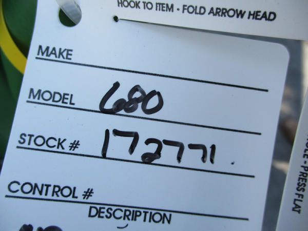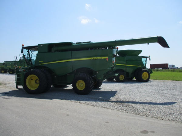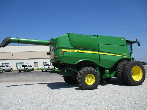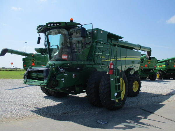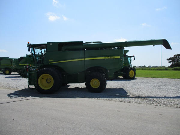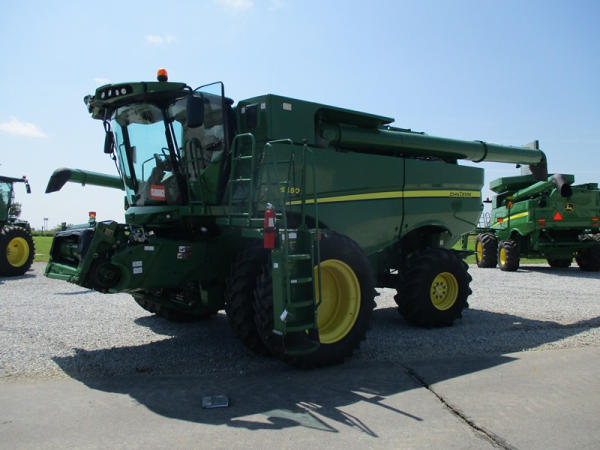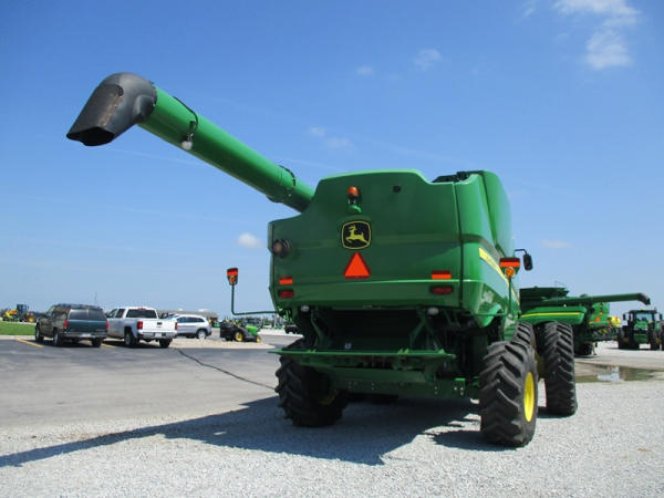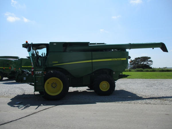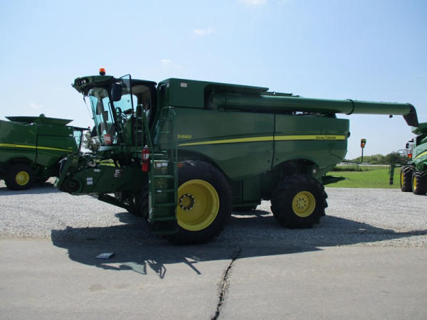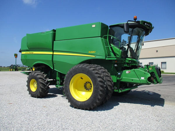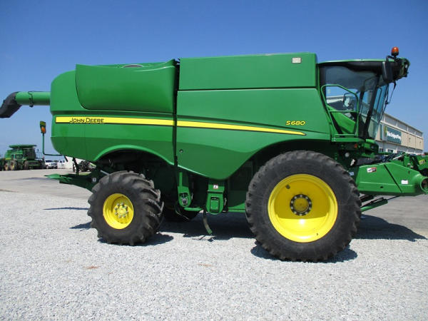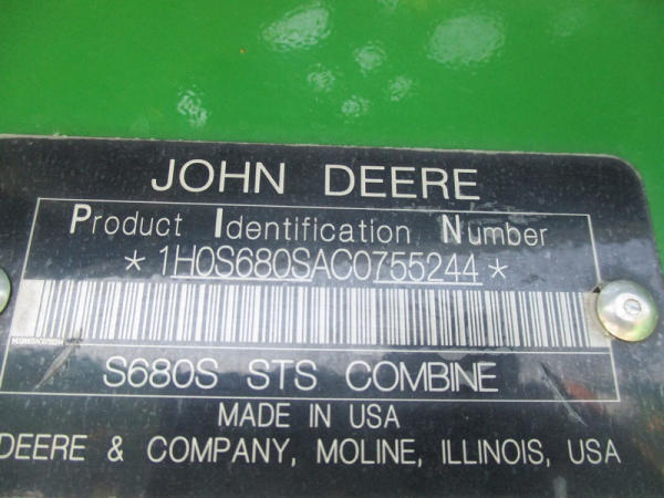 2013 John Deere S680 Combine (DR3143, Unit 172771), John Deere diesel engine, hydrostatic drive, 4X4, premium cab, custom cutter package, Green Star 3, 7.9M unloading auger, hard top grain tank cover, AM/FM CD radio, cab heat/air conditioning, LED light package, 520/85R42 front tires & duals, 620/75R26 rear tires, shows 1211 engine hours, 815 seperator hours.