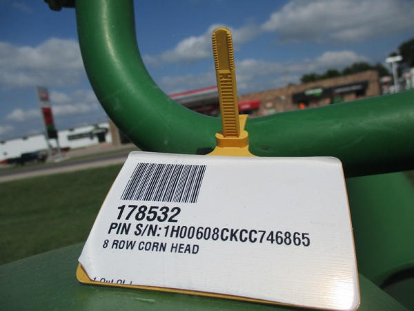 2012 John Deere 608C Corn Head (DR3148 Unit 178532), 8R30 chopping corn header, contour master, single point hook up.