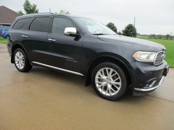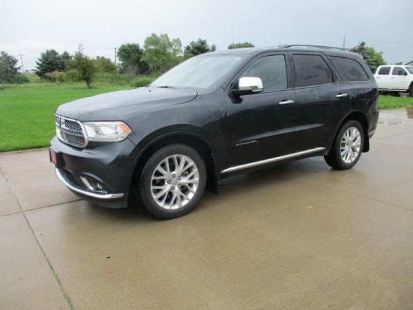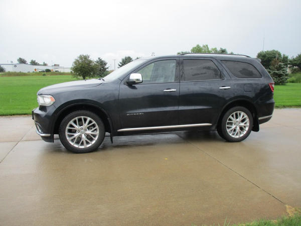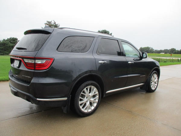 2014 Dodge Durango Citadel (DR3159), V-6 gas engine, automatic transmission, AWD, 7 passenger seating, rear DVD entertainment screens, rear climate control, front heat/vented seats, heated steering wheel, 8" display, navigation, power windows, locks and front seats, NEW 265/50R20 tires, shows 170,000 miles.