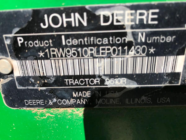 2014 John Deere 9510R Tractor (PD1745), 18/6 powershift transmission, tires are triples, PTO, big hydraulic pump, premium cab, includes Star Fire 3000 globe GPS sustem with 2630 display and SF1 activation, 1986 hours.