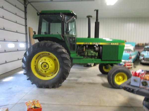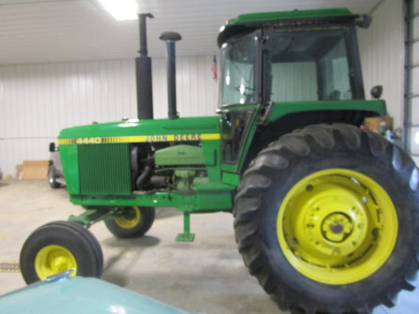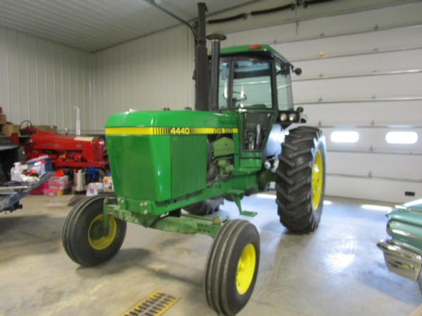 1980 John Deere 4440 Tractor (LD254), Original tractor, new in 1980, one-owner tractor, used for light hay-work, Quad shift, front tires NEW, 10.00x16 front tires, 20.8-38 rear wheels at 70%, 130HP John Deere diesel engine, Quad range transmission, partial power shift, two-port hydraulics, 3-point, 540/1,000 PTO, comes with intercooler, very snappy tractor, paint and rims recently touched up, heavy off set cast with 500lb inside weights and outside starter weights, diesel injection pump never been touched, A/C needs recharged, two new John Deere batteries, owner cannot locate R-12 refrigerant, shows 393 hours, 10,393 hours.