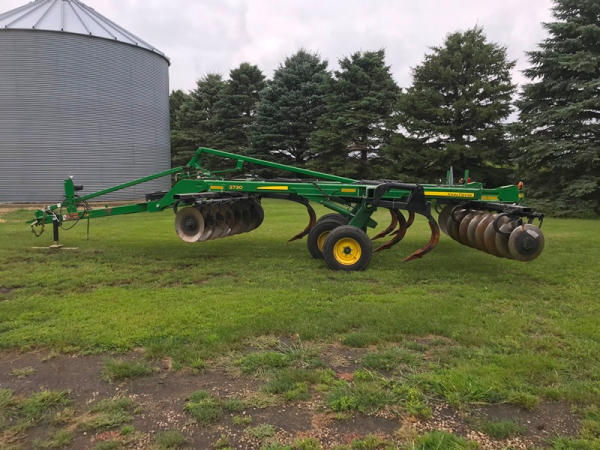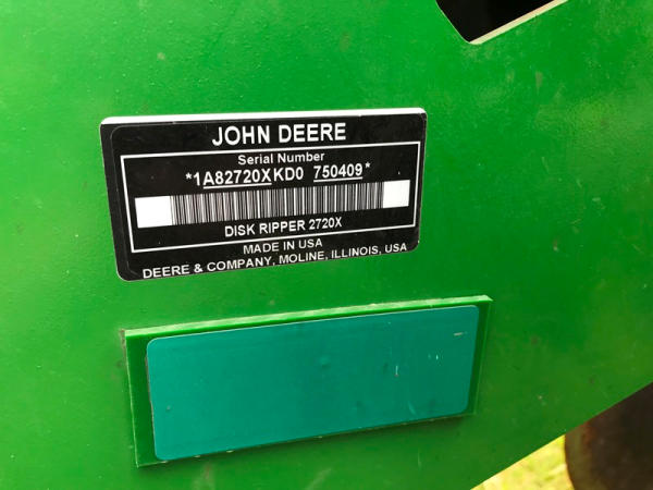 2013 John Deere 2720X Disk Ripper (ED1101), 5 shank, 12.5' disk ripper, 1,100 acres of use, straight machine, stored inside, like new condition.