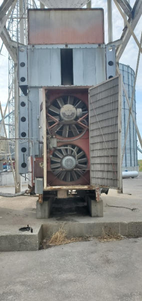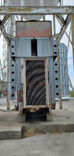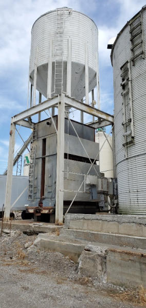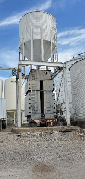 Behlen Grain Dryer W/ Overhead Bin & Super Structure (PD1746), coninuous flow, gas, 600-800 bushel per hour, 2700 bushel capacity on overhead, gravity flow.