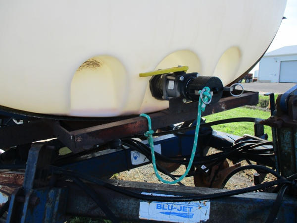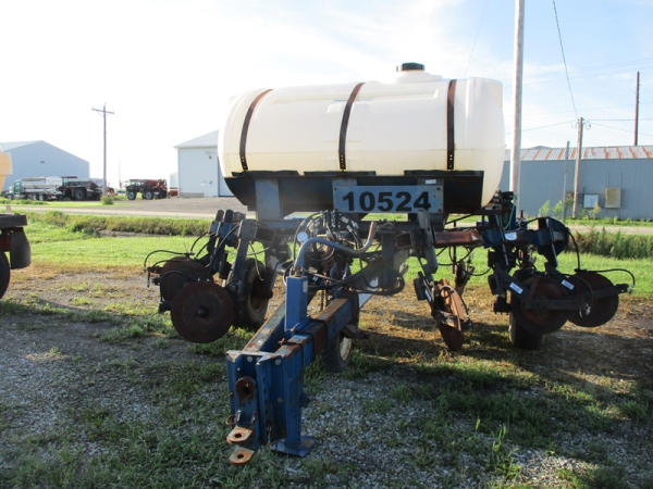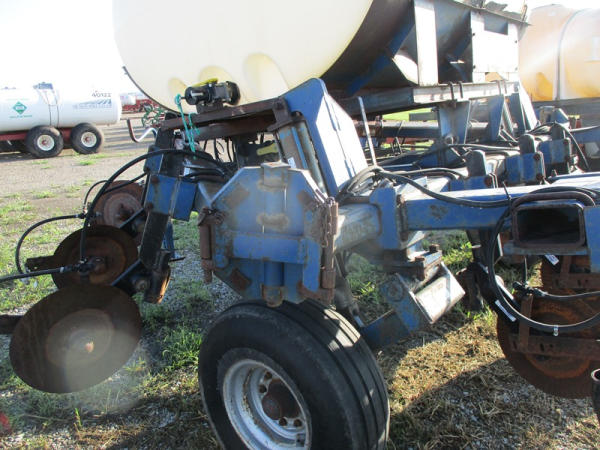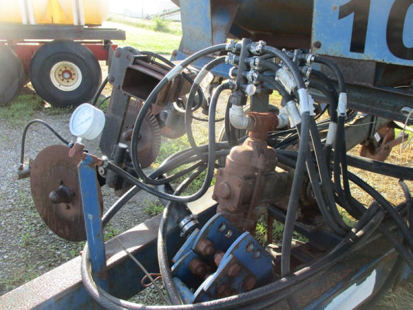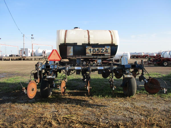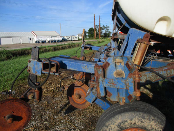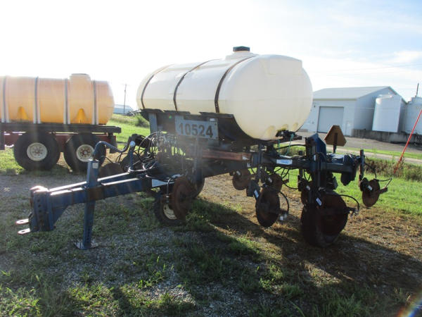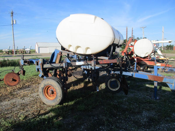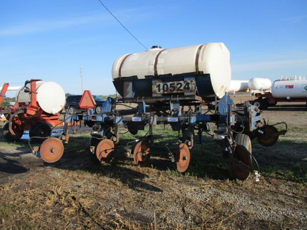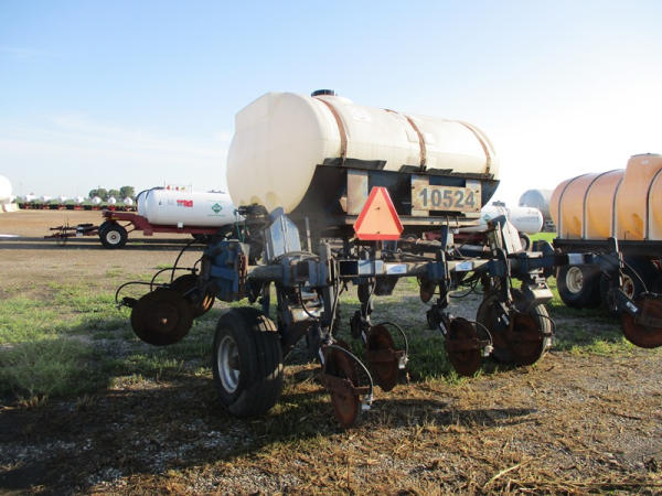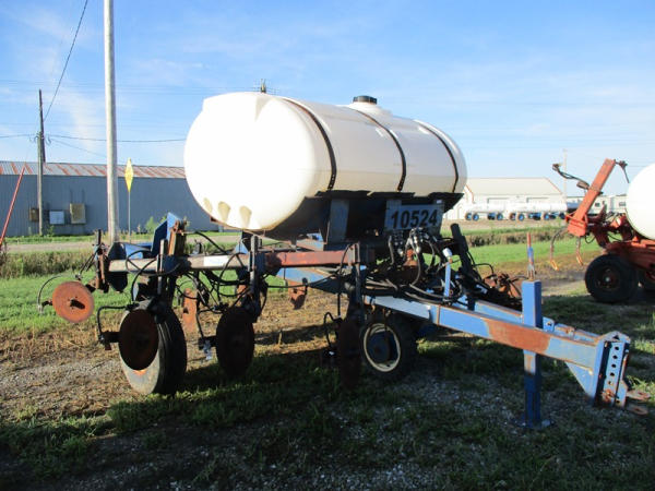 Blu-jet 50 Series Liquid Applicator (DR3164 Unit 10524), liquid side dress applicator, 11 knife, coulters, 800 gallon poly liquid tank, John Blu ground drive pump.
