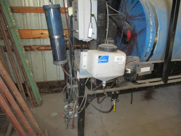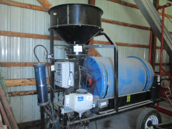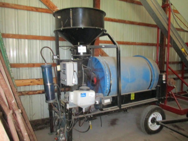 USC LP800 Seed Treater (DR3167), LP 800 portable seed treater, seed wheel, control panel, on stands.