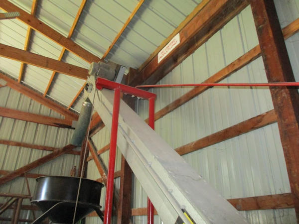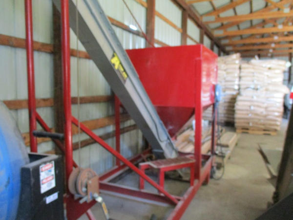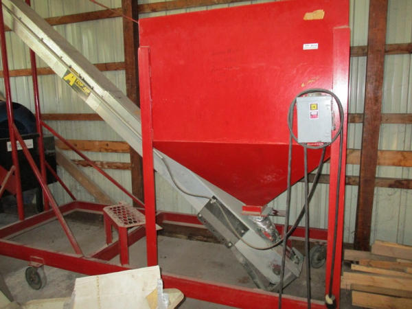 Feeding Hopper (DR3168), treater feed hopper, Top Air conveyor w/electric motor, start/stop box, castered cart.