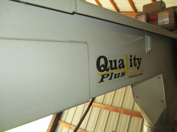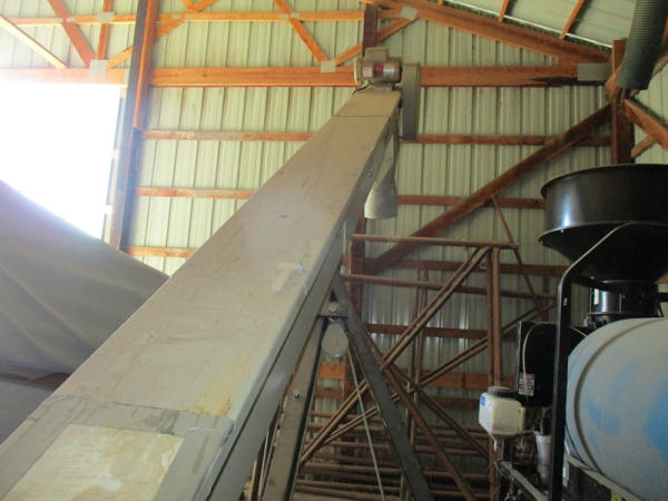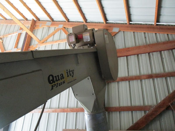 Quality Conveyor (DR3169), portable seed conveyor, cleated belt, top drive electric motor, transport gear.