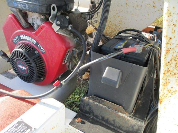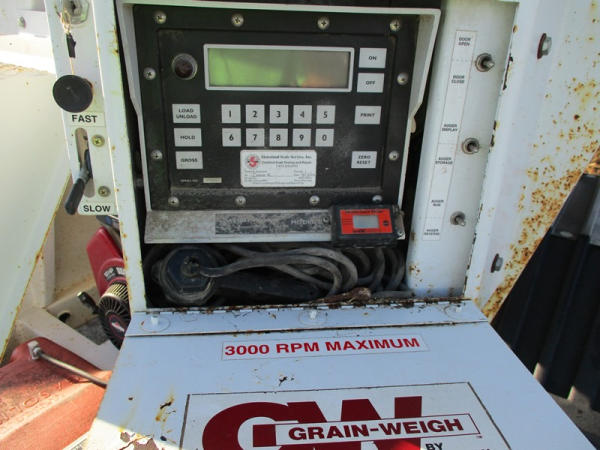 Par-Kan GW-150 Weigh Wagon (DR3162 Unit 10520), weigh wagon, self contained hydraulic, gas engine w/electric start, Weigh Tronix digital read scale head, folding auger, roll tarp, single axle, 12-16.5 tires.