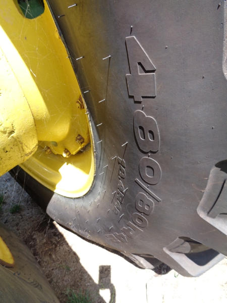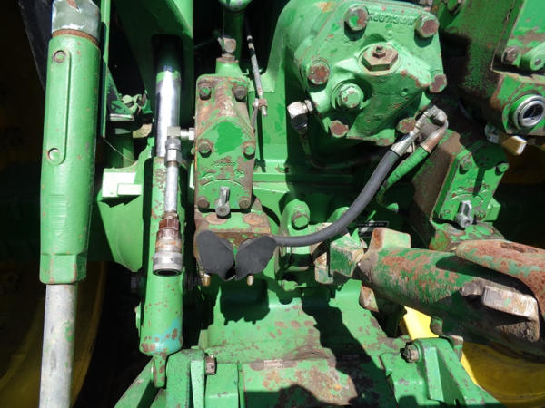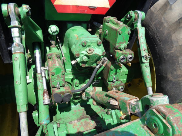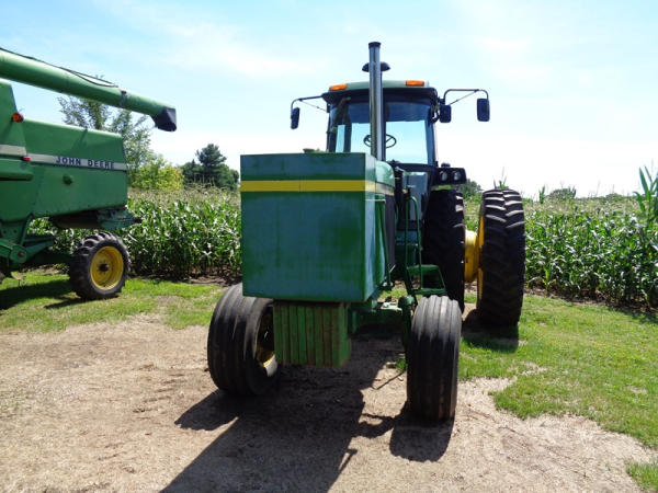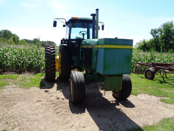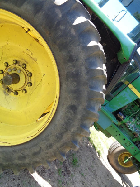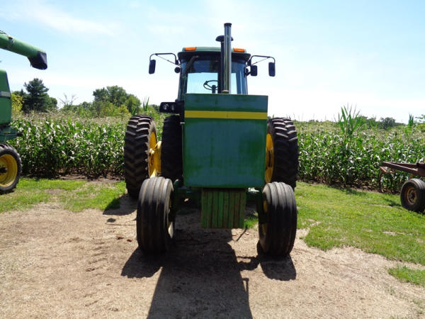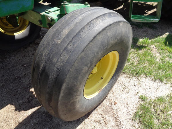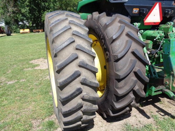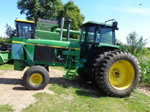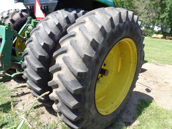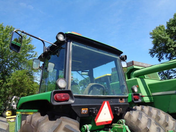 1981 John Deere 4840 Tractor (PZ2803), diesel engine (Major overhaul and clutch in 2001), Powershift transmission, air conditioning, heat, Am/Fm cassette radio, extension mirrors, side steps, 3 port hydraulics, PTO, quick hitch, front weights, Firestone 14L-16.1 front tires, 18.4R42 rear dual tires, shows 1838 hours (Tach replaced in 2001 it showed 5000 hours).