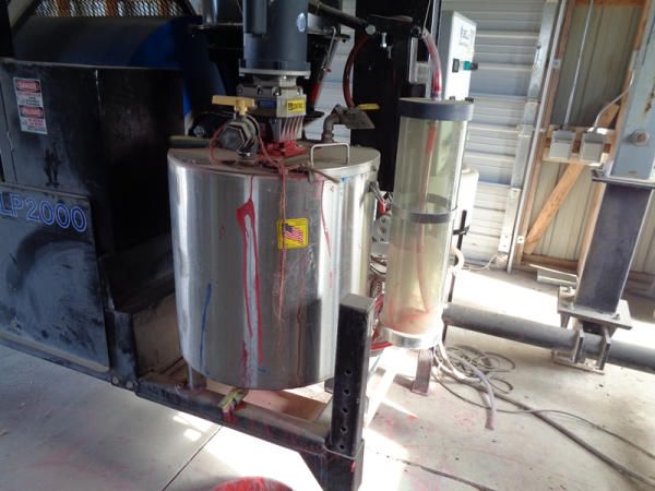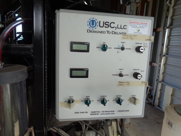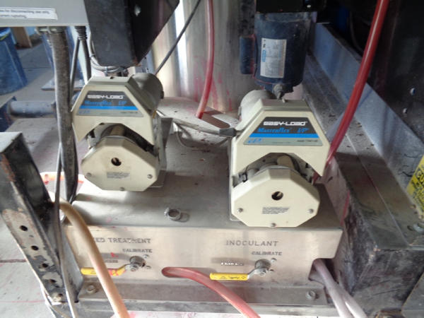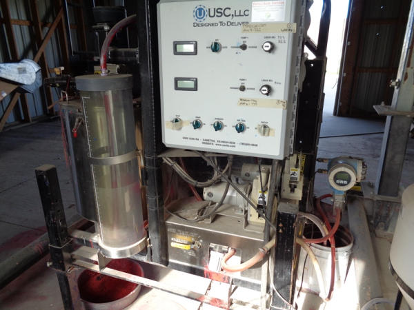 USC LP 2000 Seed Treater (PZ2787), USC LP 2000 seed treater, seed wheel, stainless steel tank, poly tank, Zero flow meter totalizer, 2 - easy-load model 77601-00 Masterflex, control panel.