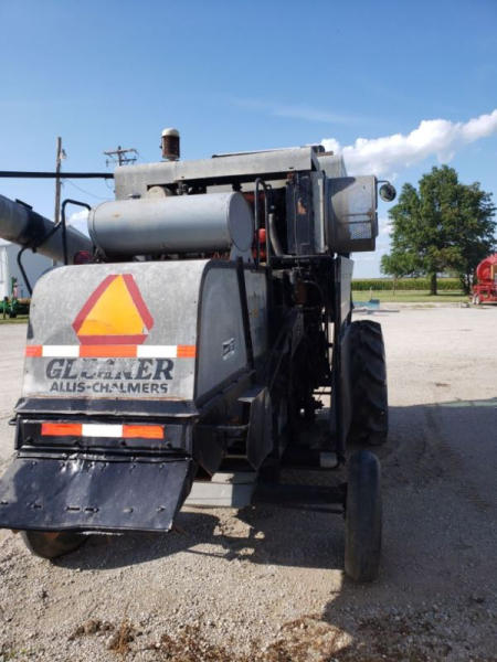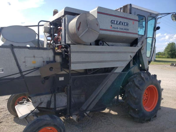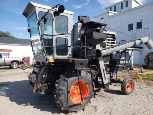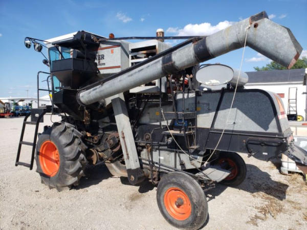 Gleaner K Combine (PD1757), Chevy inline 6 gas engine, 3 speed transmission, scales for plot testing, 18.4 26 front tires deep lug.