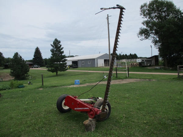 IHC 1100 Sickle Mower (DR2702) IHC Model 1100 Sickle mower, recently replaced guards and sickle, 9' bar, PTO, single axle, pull type.