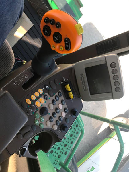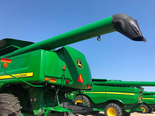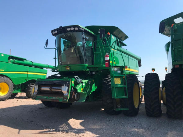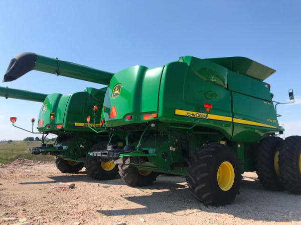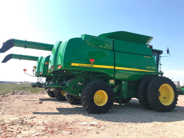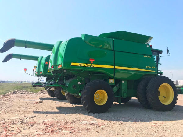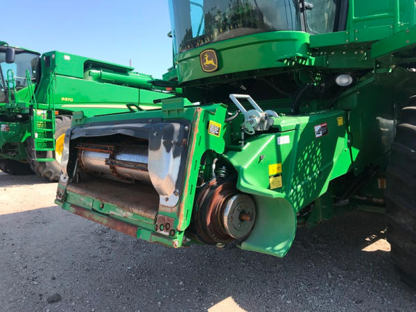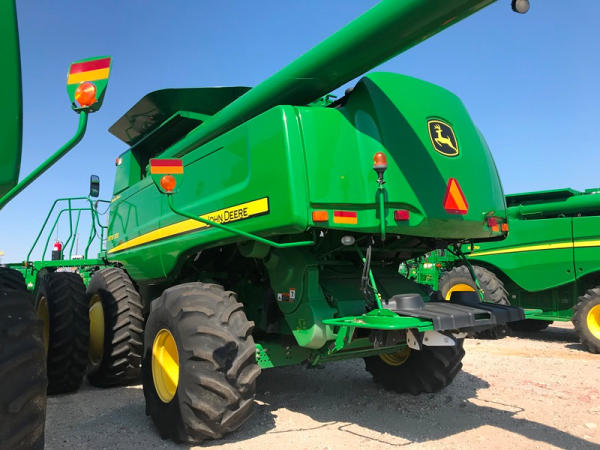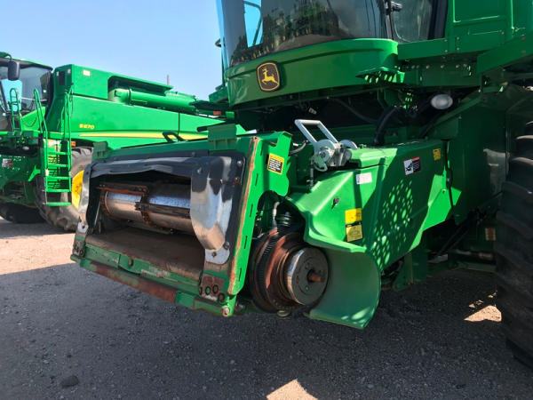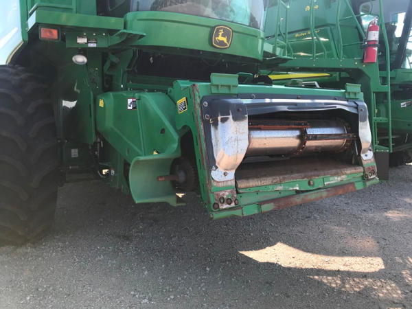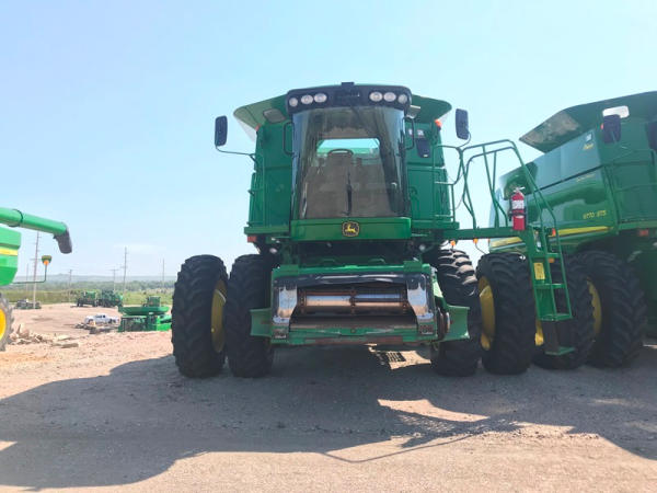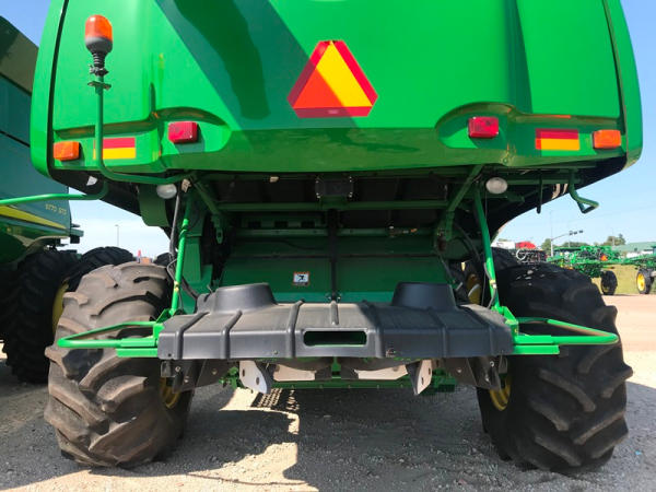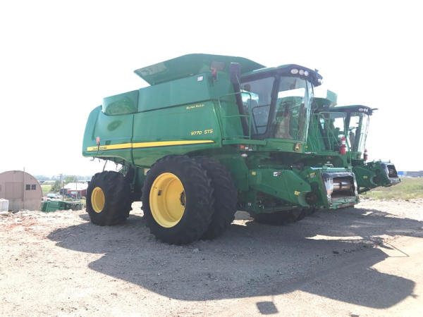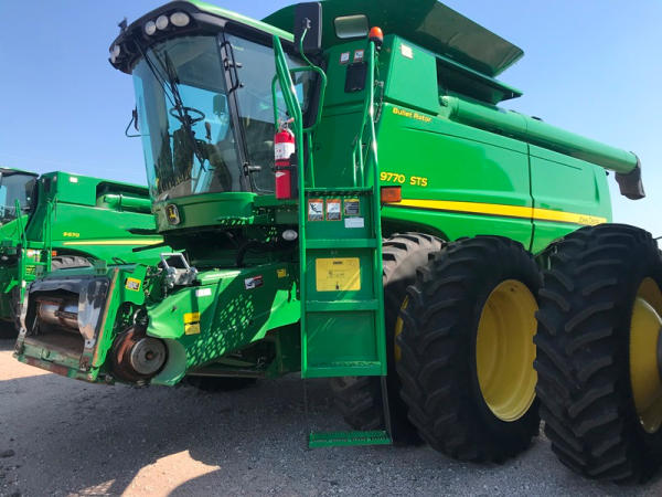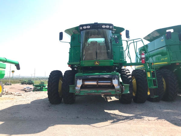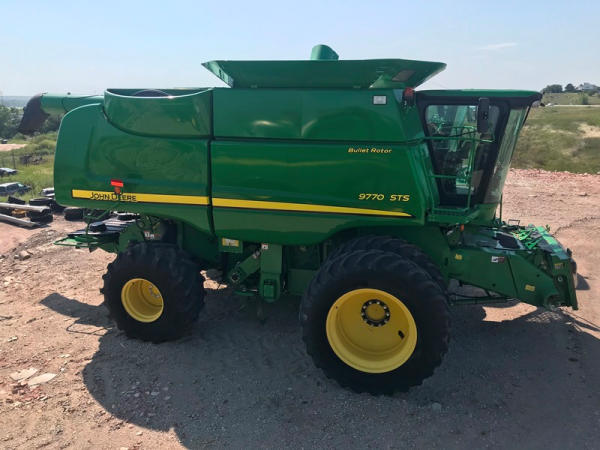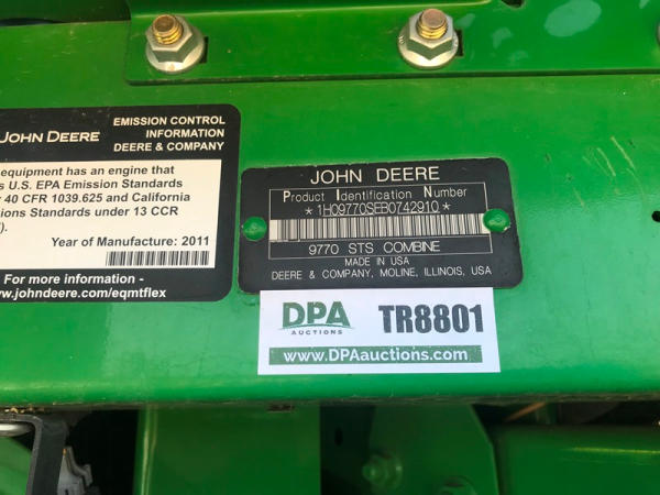 2011 John Deere 9770 STS (TR8801), 2WD, diesel engine, heat, air conditioning, Am/Fm radio, premier cab, contour-master feederhouse with reverser and high-torque variable speed drive system, 3.15 inch feederhouse lift cylinders, extended wear round bar concave and extended wear separator package, general purpose adjustable chaffer and bottom sieve, extended wear grain handling system with high capacity unloading system and 22.5' 1-piece unloading auger, 2 speed straw chopper, integrated chaff spreader, power cast powered tailboard residue management system, ProDrive transmission and HarvestSmart feed rate control, 520/85R42 duals, adjustable rear axle with heavy-duty spindles, shows 3,216 engine hours, shows 2,052 separator hours.